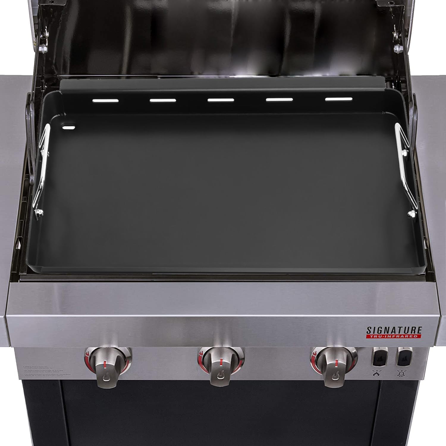 - ✅Crafted with high-quality materials, this griddle insert for charbroil tru infrared 3-burner ensures even heat distribution and exceptional durability. The advanced non-stick coating allows for effortless food release and easy cleaning, making it a hassle-free addition to your grill. The extra handles are designed for a firm grip and make switching between grill griddle and grill grate easier