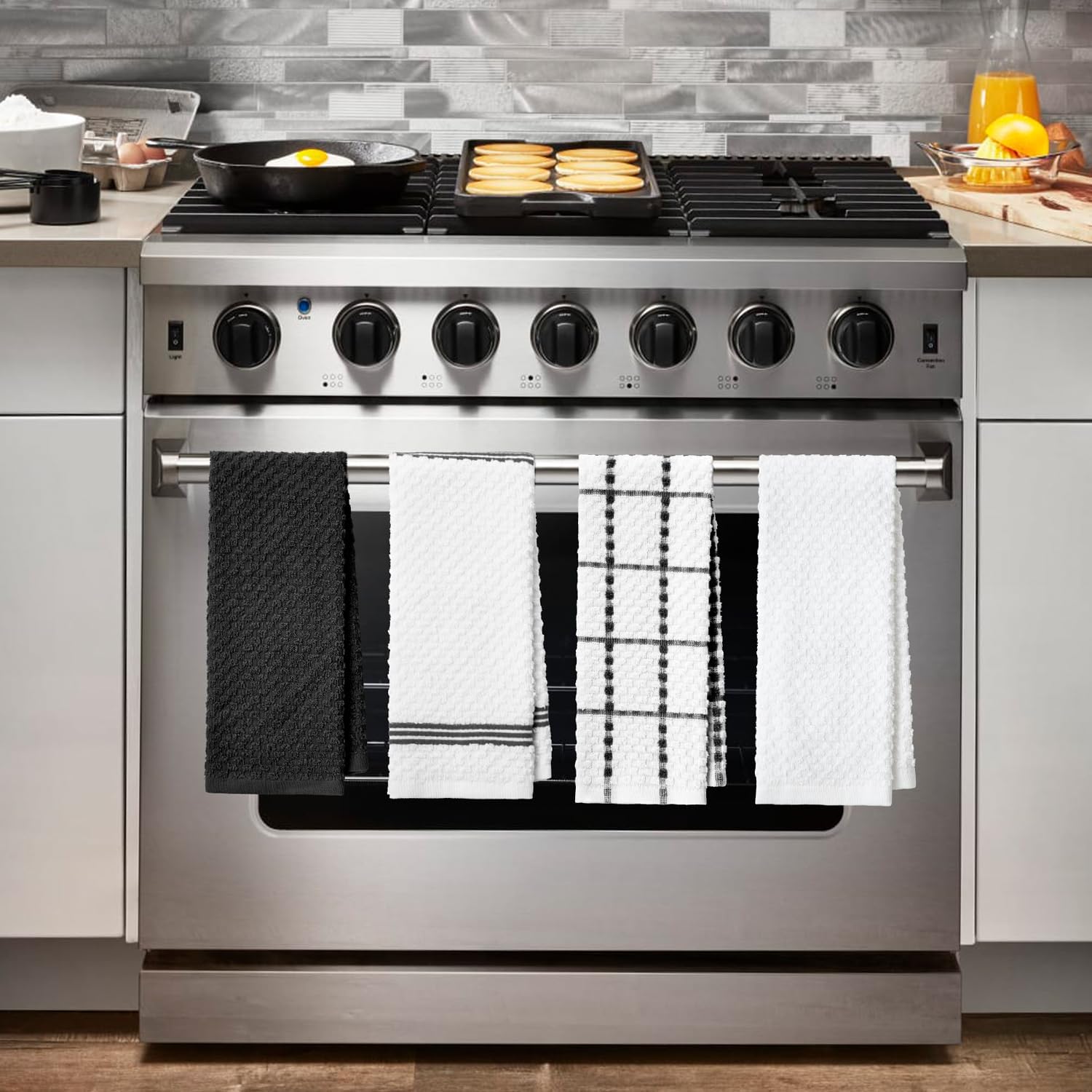 Artoid Mode Ring Spun Cotton Black Kitchen Dish Towels, 15x25 Inch Ultra Soft Absorbent Quick Drying Household Cleaning Tea Towels Bar Towels Set of 4