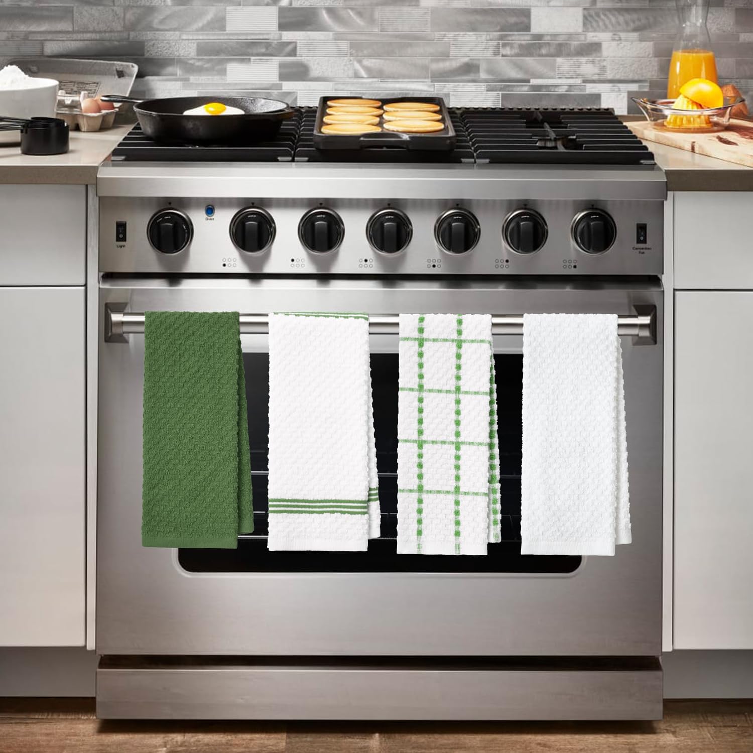 - VALUE PACK: Collection includes 4 cotton kitchen towels available in a variety of colors to coordinate with any kitchen dΓ©cor. Measures 15 in x 25 in.