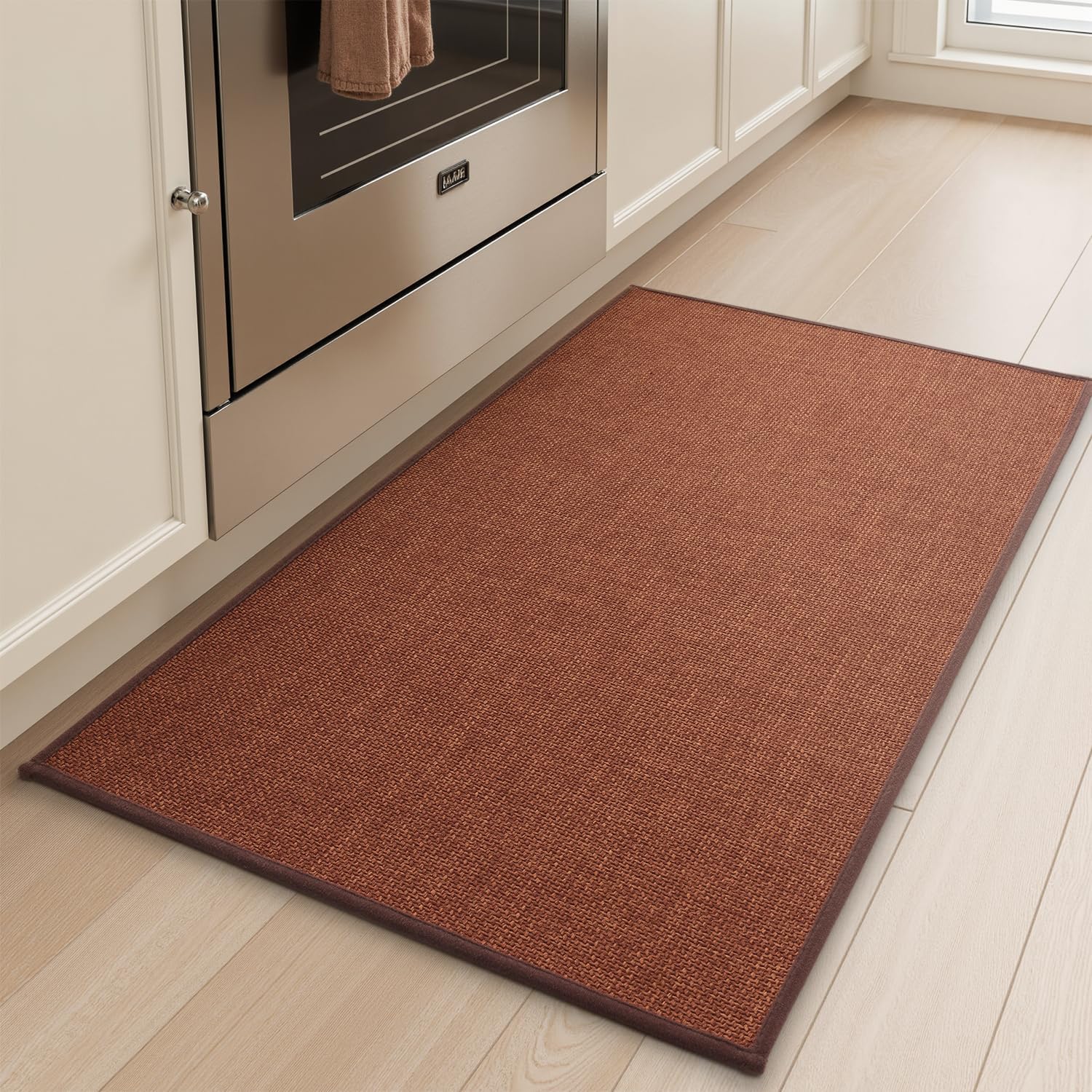tchdio Kitchen Mats for Floor, Rubber Backed Kitchen Rugs Non Slip Washable, Superior Absorbent Kitchen Runner Rug Easy to Clean, Comfort Kitchen Floor Mat Front of Sink (Burnt Orange, 20" × 47")