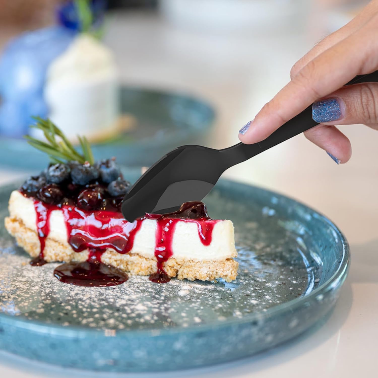 - 【Premium Material】: Dealusy black plastic spoons disposable are made of food grade polystyrene, total BPA free and toxin free for your healthy meals.