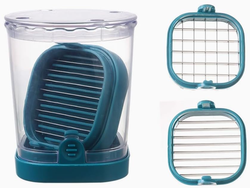 Fruit Slicing Cup - halteoly, 2 in 1 High Speed Cutter for Strawberries, Bananas, Grapes, Eggs etc Stainless Steel Vegetable Dicer, Kitchen Gadget, Kitchen Portable Slicing Tool (Dark blue)