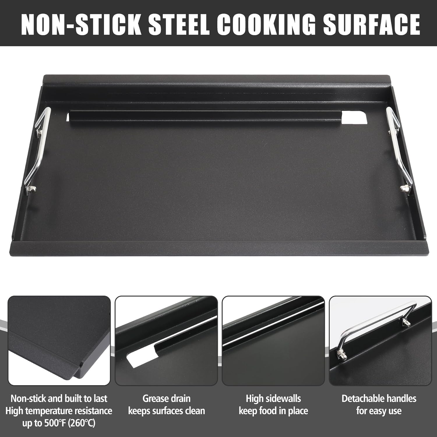 Full Size Griddle with Handles for Kitchen Aid 720-0745D 730-0745, Flat Top Grill Insert Replacement for KitchenAid 730-0745B 730-0745D 720-0819 740-0780, Carbon Steel, Non-stick
