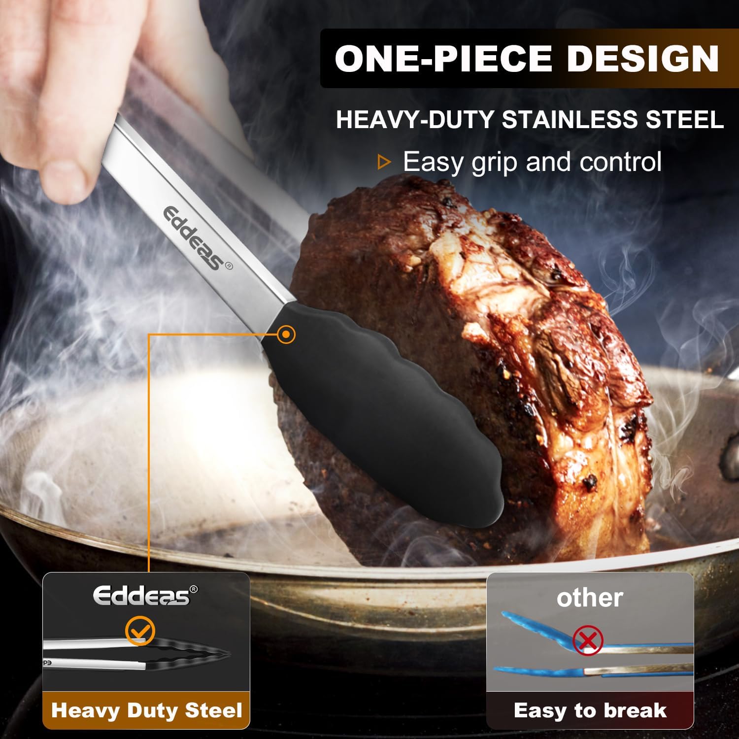 - FOOD GRADE STAINLESS STEEL & SILICONE - Eddeas tongs for cooking featuring a food grade silicone head, the tongs are gentle on your nonstick cookware so you can worry less about scratching and wear and tear, silicone is heat resistant up to 600 degrees Fahrenheit, making it a great option for nearly any cooking task.