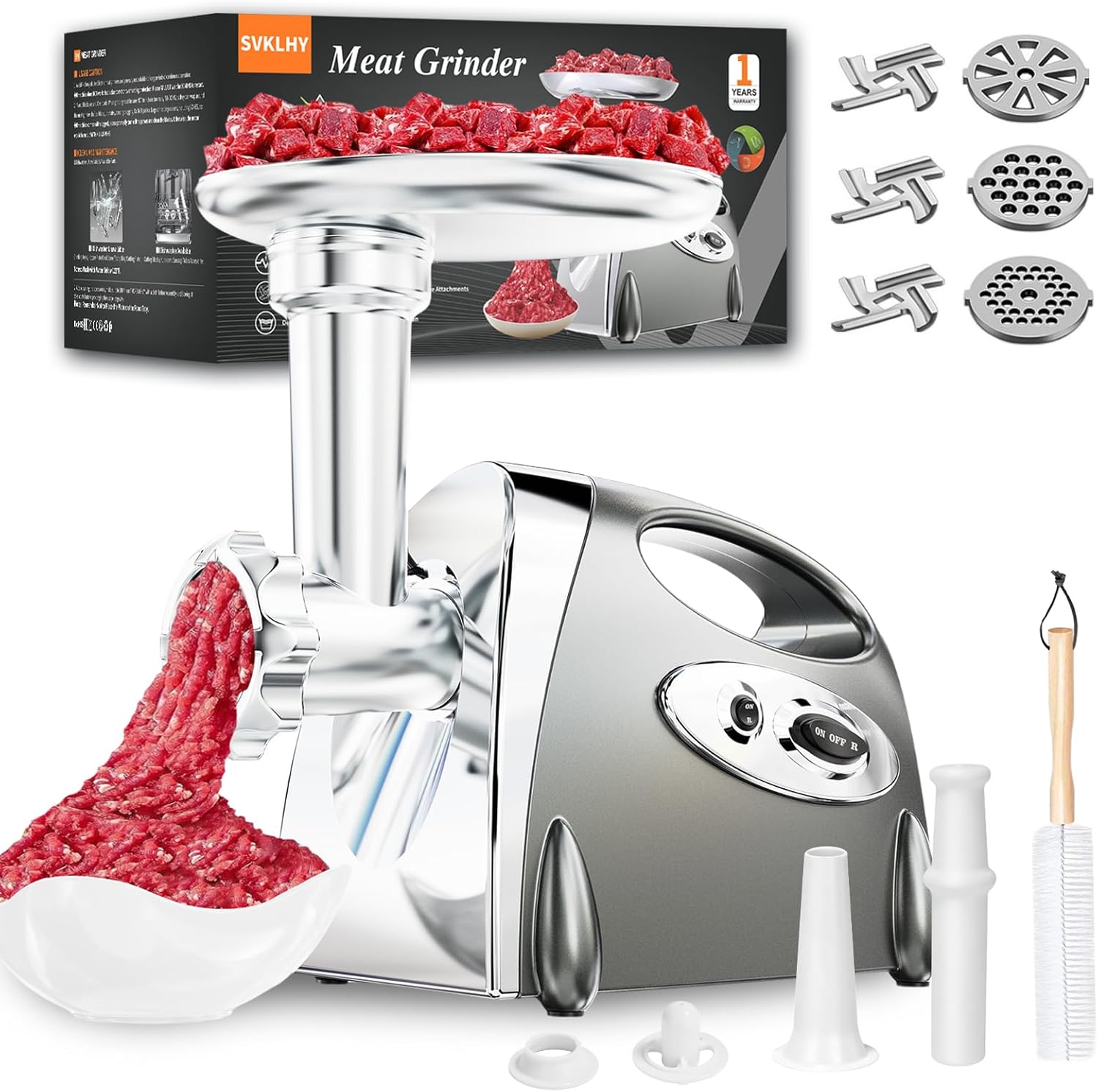 - 【SUPERIOR POWERFUL&UPGRADED MOTOR】NOTES: BE SURE NOT TO INCLUDE TOO MANY TENDONS. SVKLHY electric meat grinder features a robust motor (3000W MAX, 20% More Powerful), enabling you to quickly grind large quantities of meat. Its high efficiency saves you time and effort, making it an indispensable tool for home cooks and professional chefs alike. Ideal for beef, chicken, pork, fish, and more, this versatile meat grinder is a must-have for any kitchen.
