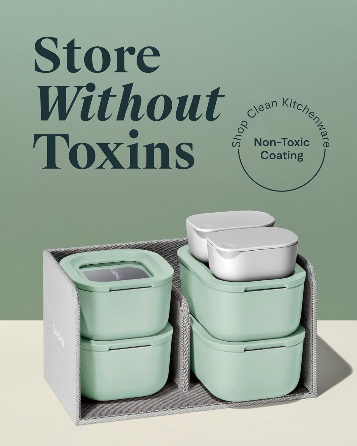Caraway Mini Food Storage 11pc Set - Glass Storage Containers for Food - Non-Toxic Ceramic-Coated Glass - Air Release Technology - Compact & Stackable Design - Mist