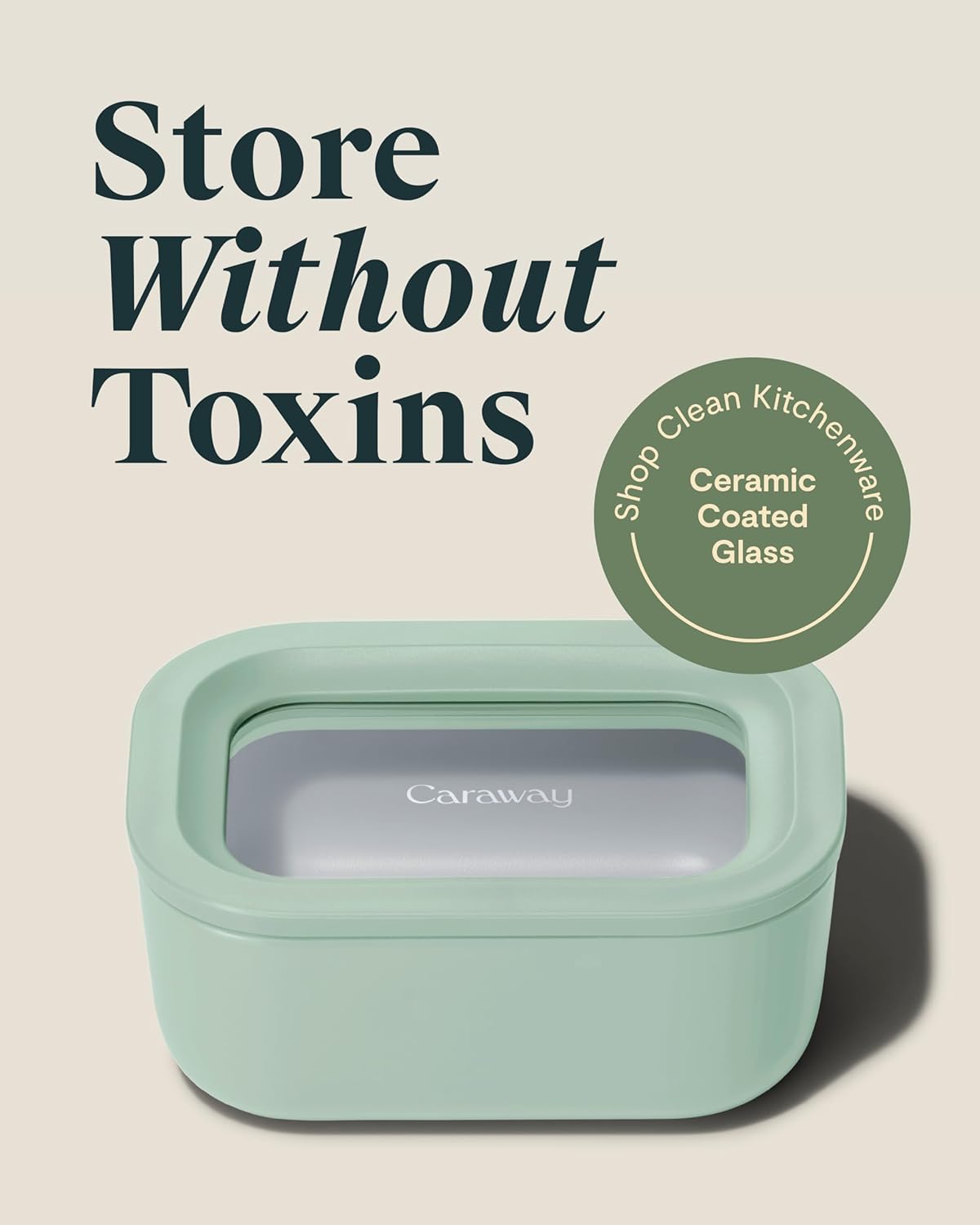 Caraway Mini Rectangle Food Storage Container - 2.6 Cup Glass Storage Container for Food - Non-Toxic Ceramic-Coated Glass - Air Release Technology - Compact & Stackable Design - Mist