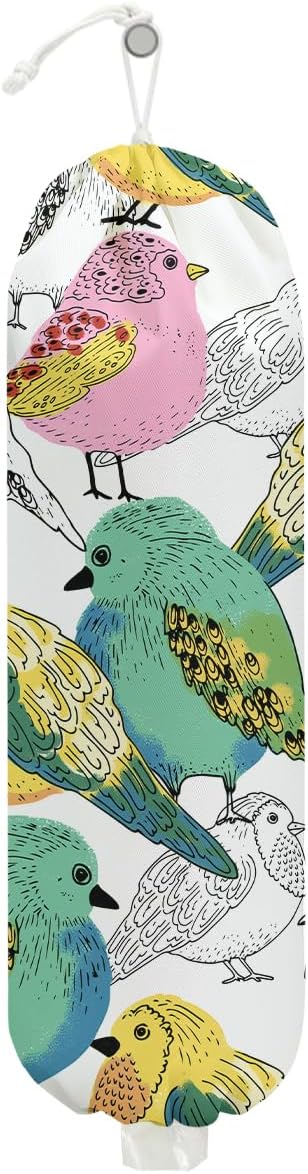 Bird Plastic Bag Holder, Wall Mount Grocery Bag Holder, Plastic Storage bag, Pull Rope Free Adjustment, Plastic Bag Holders for Grocery Bags, Plastic Bag Dispenser for Home Kitchen