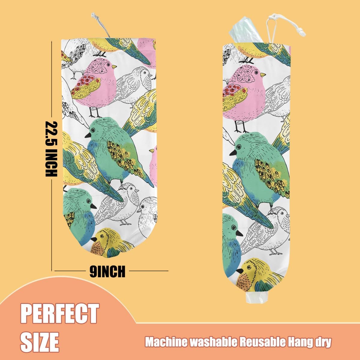 - Functional Multiple Uses-These animal and floral patterned plastic bag storage organizers are great for recycling and organizing in everyday life. Ideal for storing plastic bags, reusable grocery bags,grocery shopping bags, garbage bags,bread bag,clothes,socks. Suitable for home, office, kitchen, laundry garage, toilet etc.