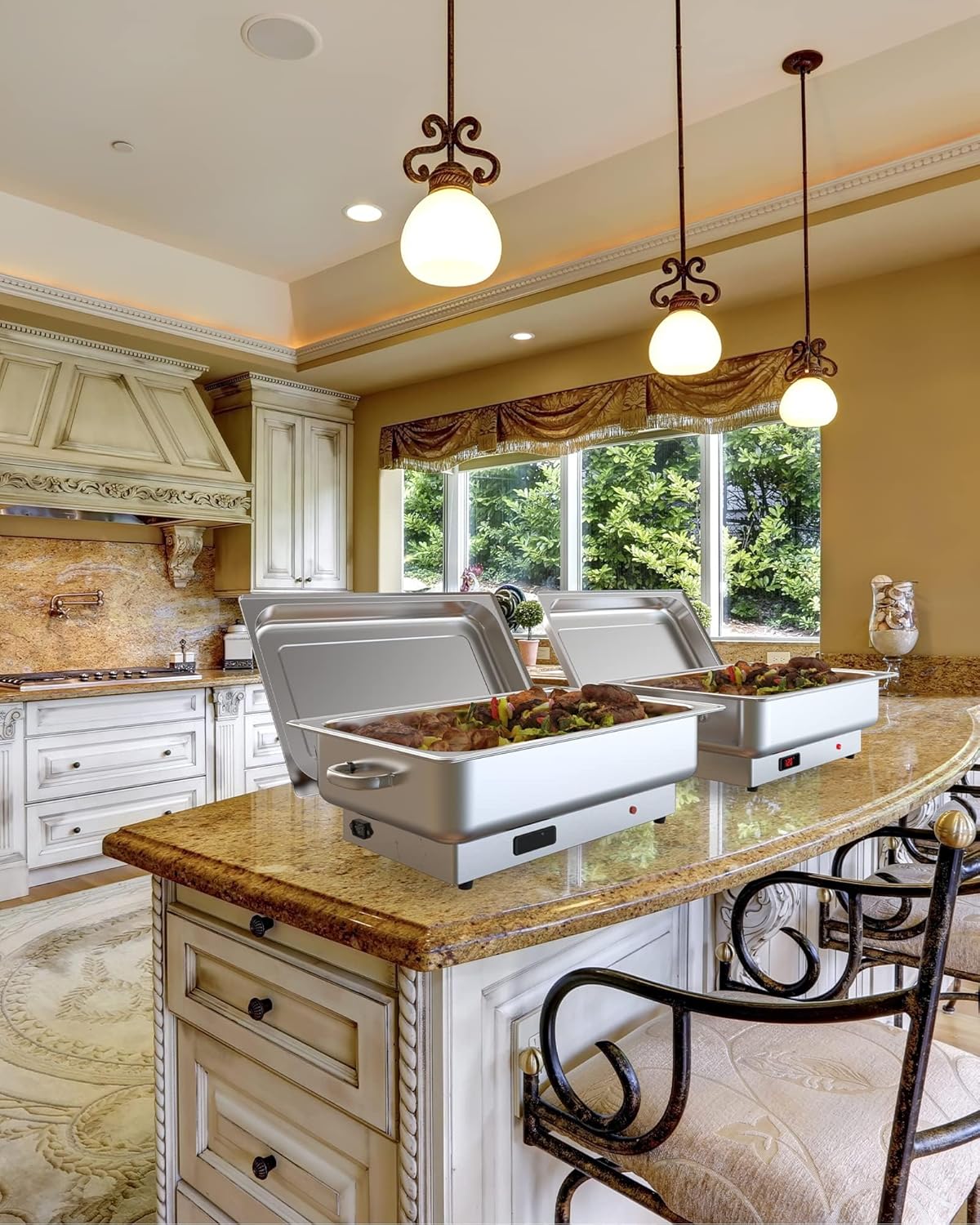- 【Wide Application Chafing Dish】Large capacity electric chafing dish can serve a lot of guests, it is a good choice for hosting parties and holiday dinners. Such as catering, parties, restaurants, buffets, hotels, wedding brunches.
