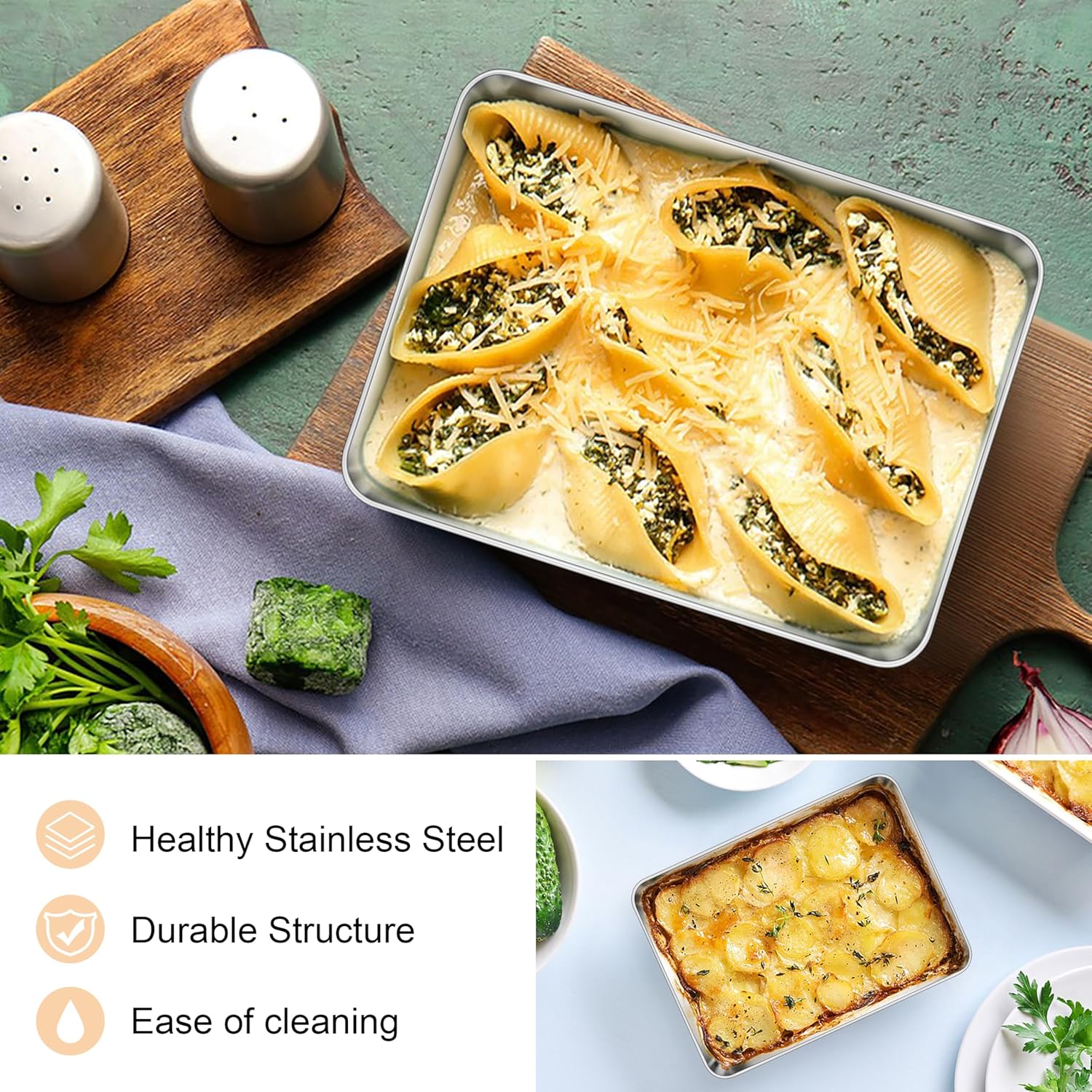 - BAKING EVENLY: Pure stainless steel provides excellent heat conductivity for perfectly browned food, With flat bottom ensures even and uniform baking for good baking performance, Make it ideal for baking/cooking/roasting veggies, bacon or chicken breast