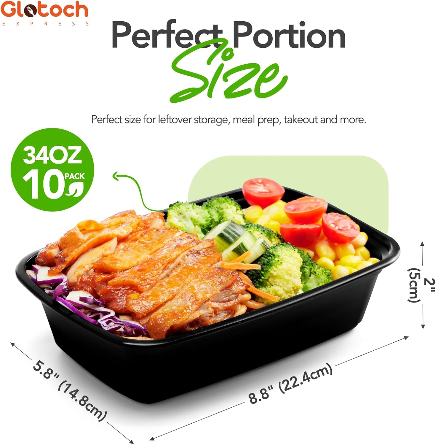 Glotoch 34oz Meal Prep Containers, 10 Pack (20-Piece) Reusable Food Prep Containers with Lids Microwave, Freezer, Dishwasher Safe Leakproof Durable Plastic Food Storage Lunch Box To Go Take Out