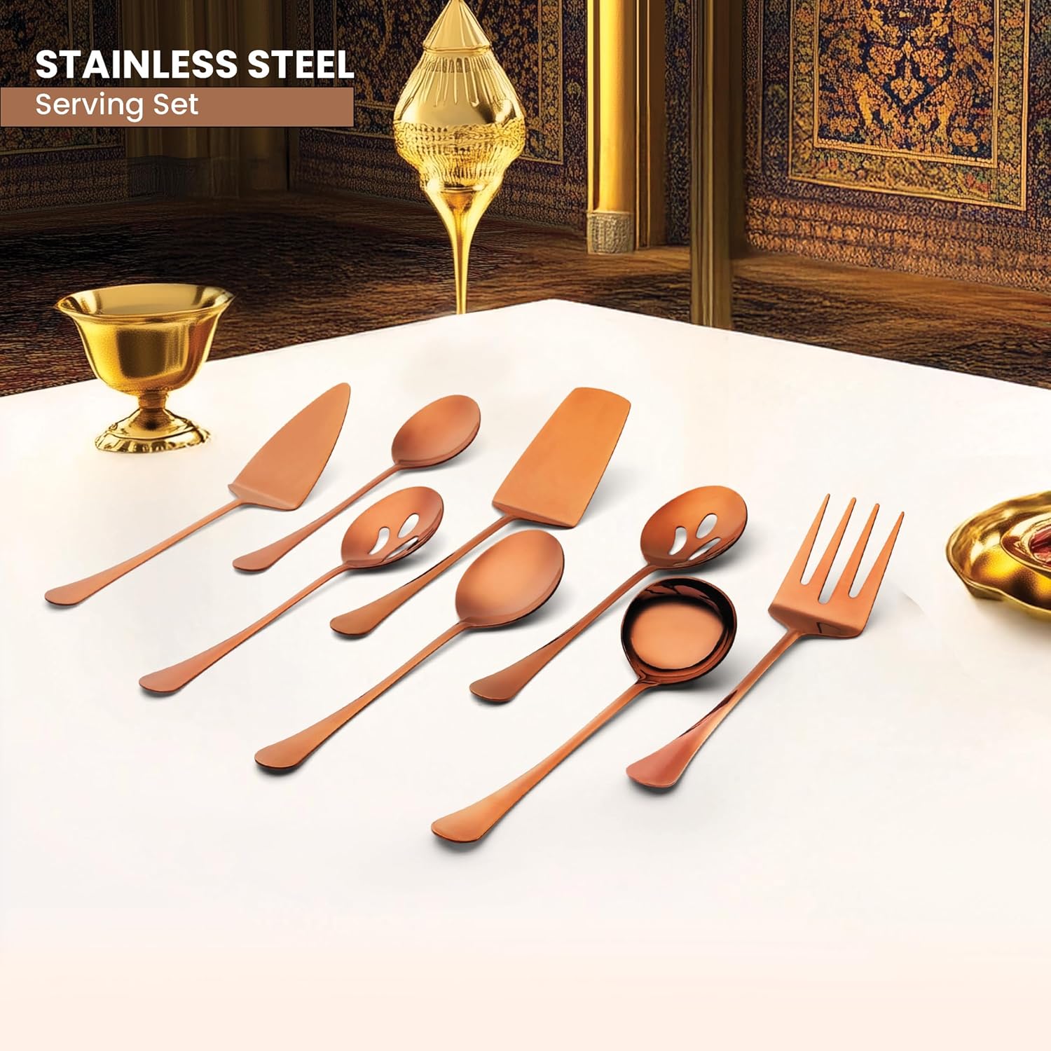 - ✅ Set of 8 Stainless Steel Hostess Serving Utensil Tool Set