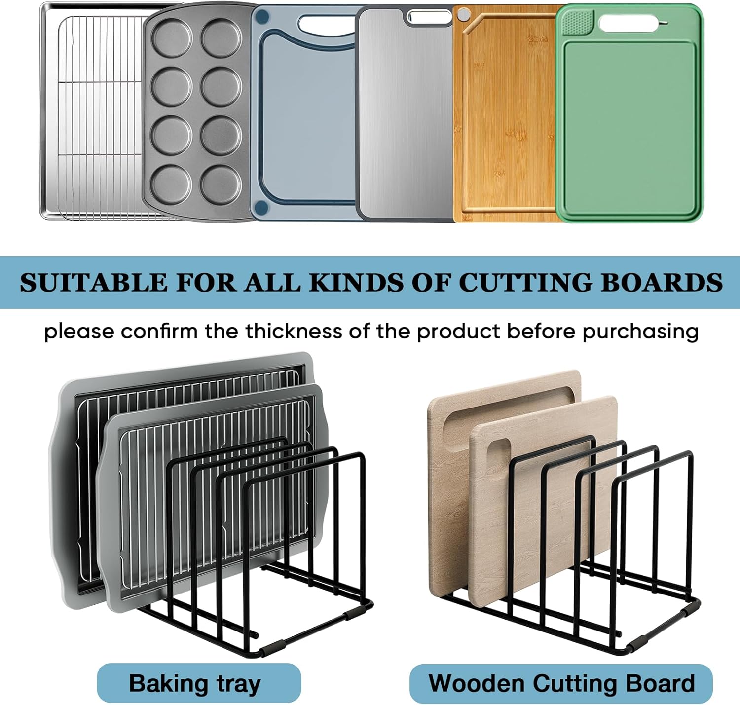 2-Pack Cutting Board Organizer, 5-Slot Steel Kitchen Storage Rack for Cutting Boards, Baking Trays, and Thin Pans - Compact Clutter-Free Solution