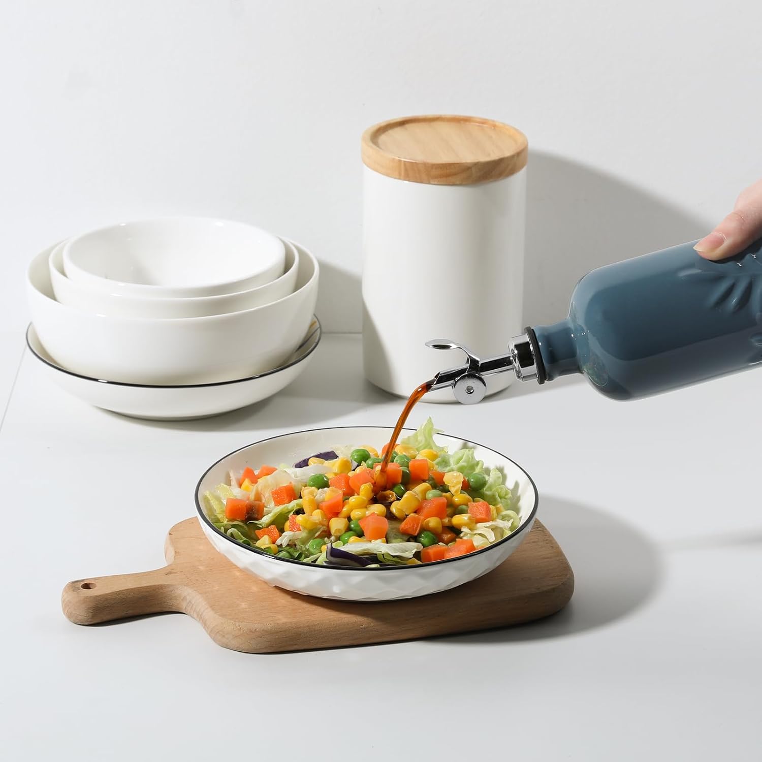 - Versatile for Kitchen & Practical- Ideal for storing and dispensing olive oil, vinegar, syrups, and more. Its 18 oz (530 ml) size is perfect for home kitchens, restaurants, cafes, or as a stylish gift. Durable, high-temperature-fired ceramic ensures lasting use.