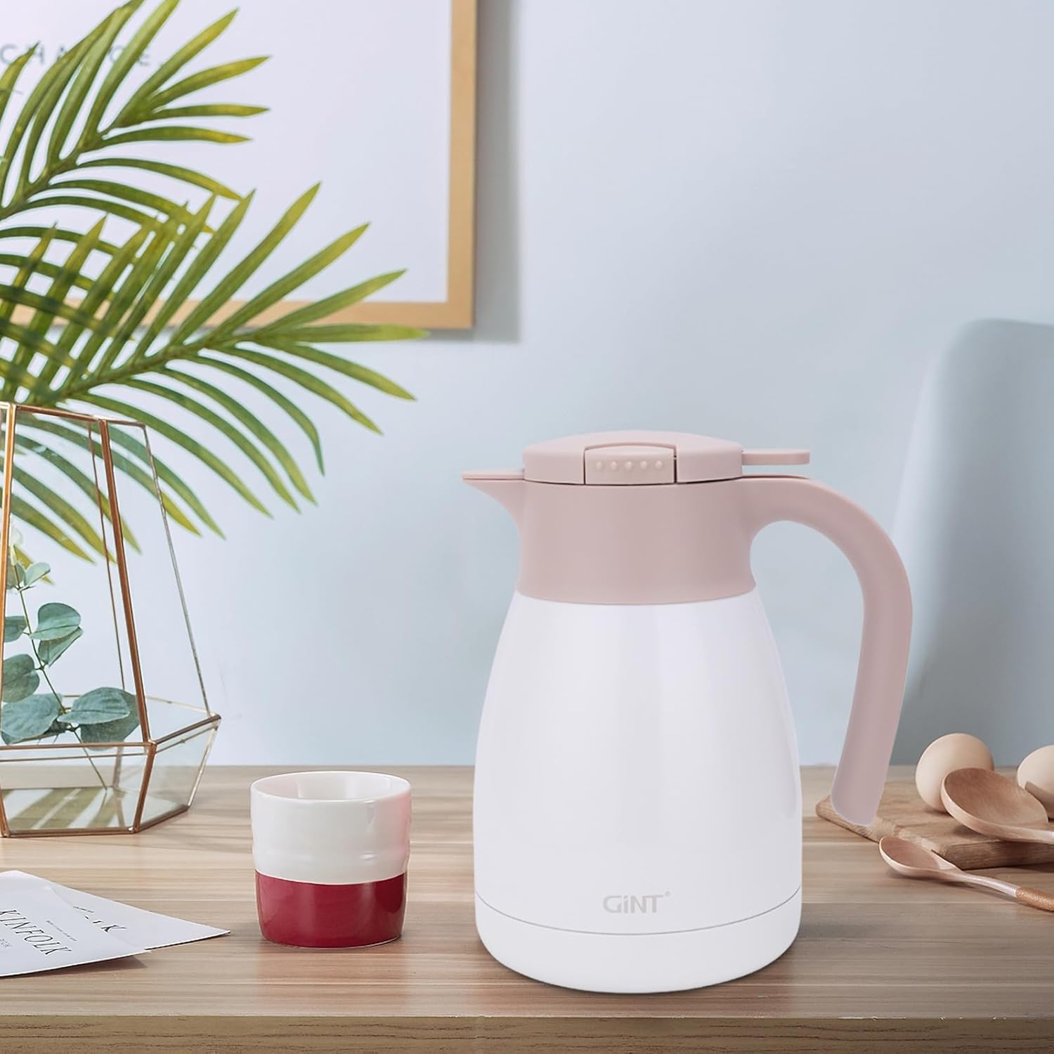 GiNT 1L / 34Oz Thermal Coffee Carafe, Insulated Stainless Steel Coffee Carafes for Keeping Hot/Double Walled Vacuum Thermal Carafe (White)