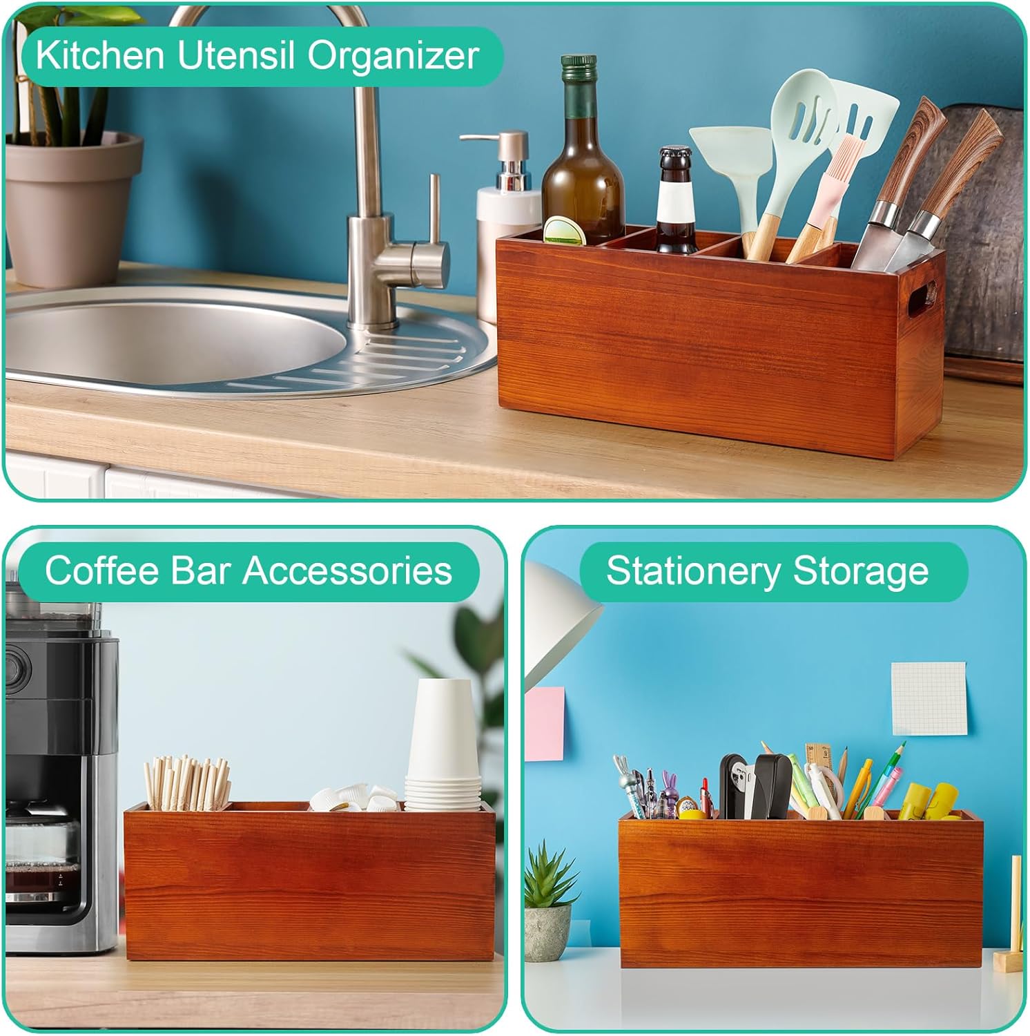 - Sturdy and Easy Maintenance - Crafted from durable pine wood, this utensil organizer boasts a sturdy structure, resistant to cracking and warping for long-lasting use. Maintain its pristine condition by wiping it with a damp cloth a few times a week.