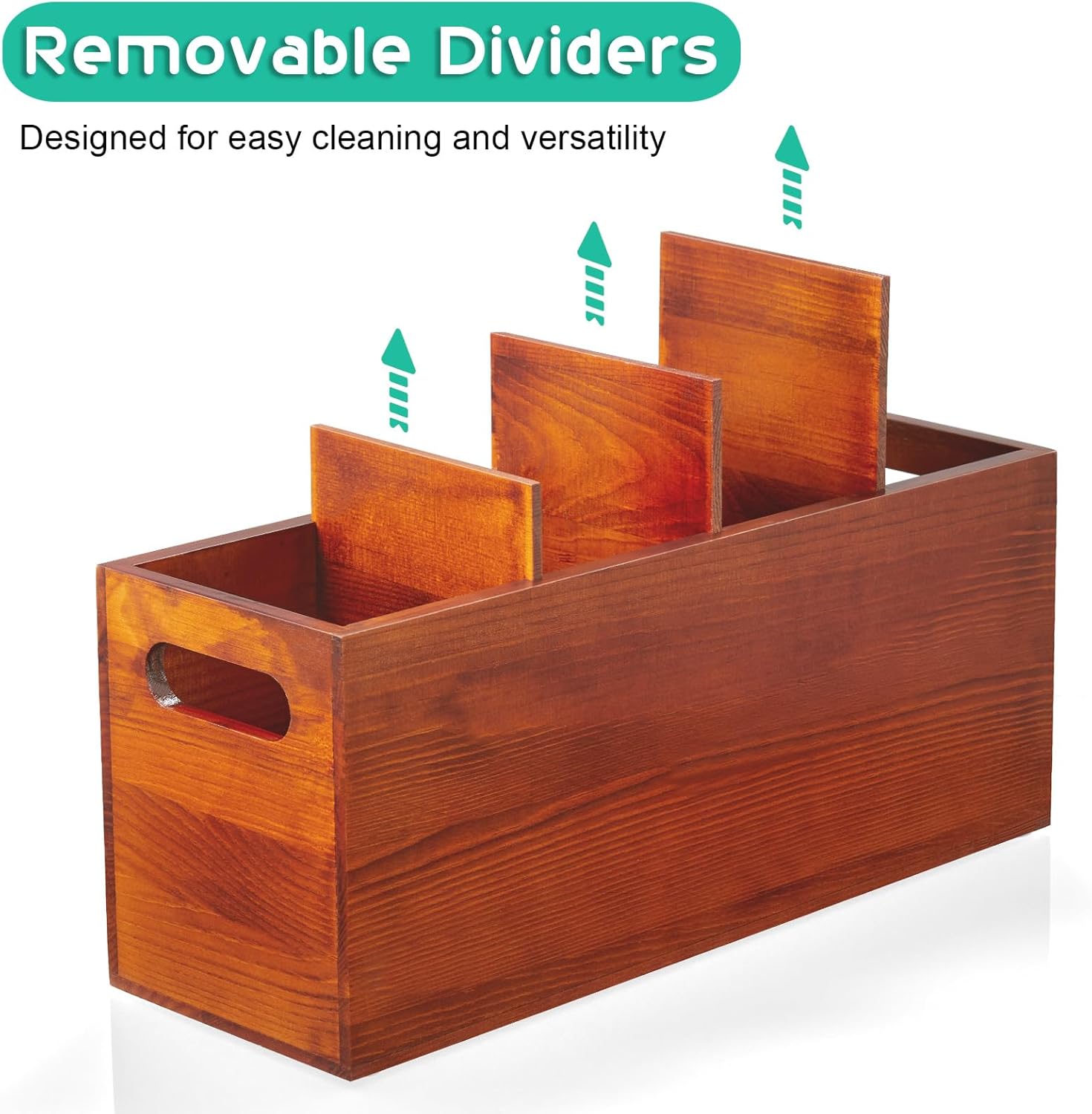 - Anti-Slip Pad & Built-in Handle - The anti-slip pad on the bottom prevents sliding, safeguarding your table or countertop from scratches. With its built-in handle, effortlessly carry this wooden utensil organizer from the kitchen to anywhere you need.