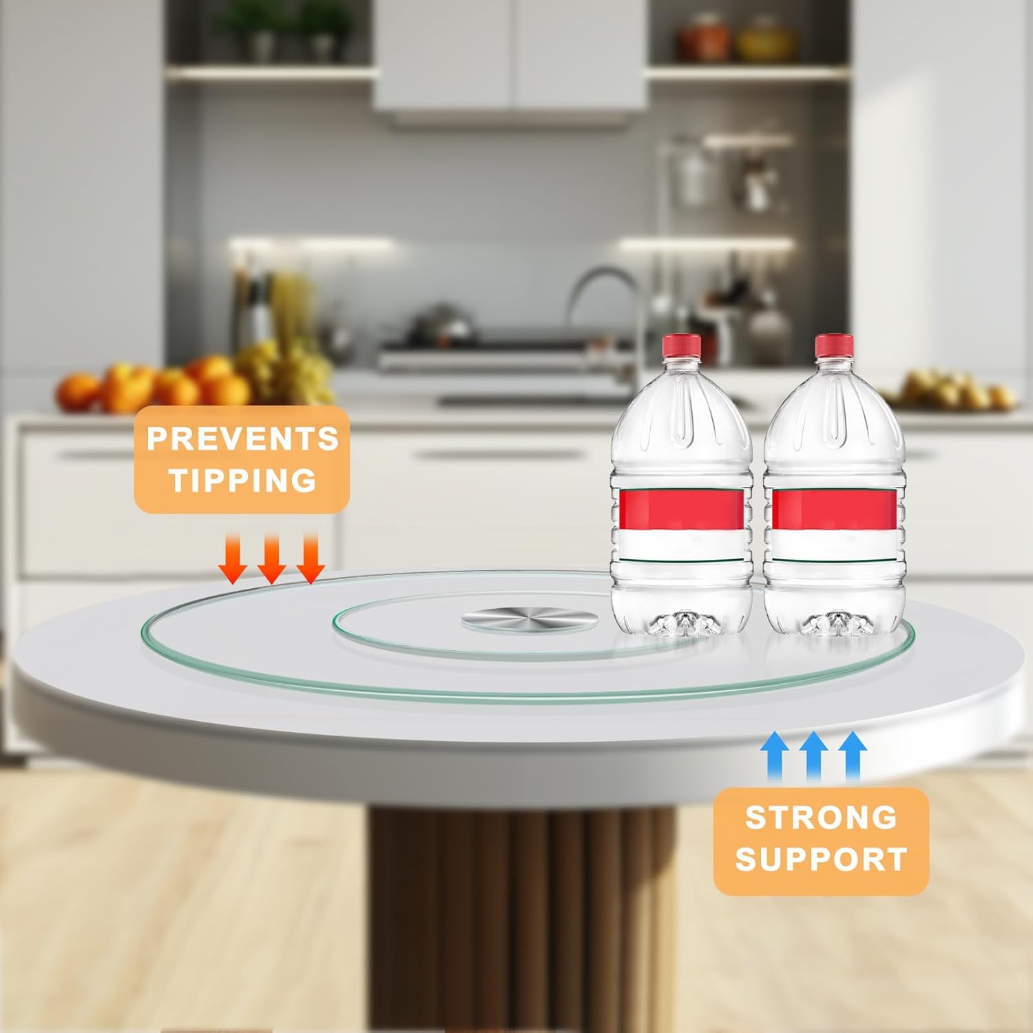 - INNOVATIVE AND STURDY DESIGN- Our Lazy Susan features an anti-tip-over design. The turntable is made of high-quality tempered glass with a smooth surface and strong load-bearing capacity. The 360-degree rotation makes it effortless and convenient for you to reach the plate you want. Made with an aluminum bearing base, it is possible to carry light to heavy objects effortlessly.
