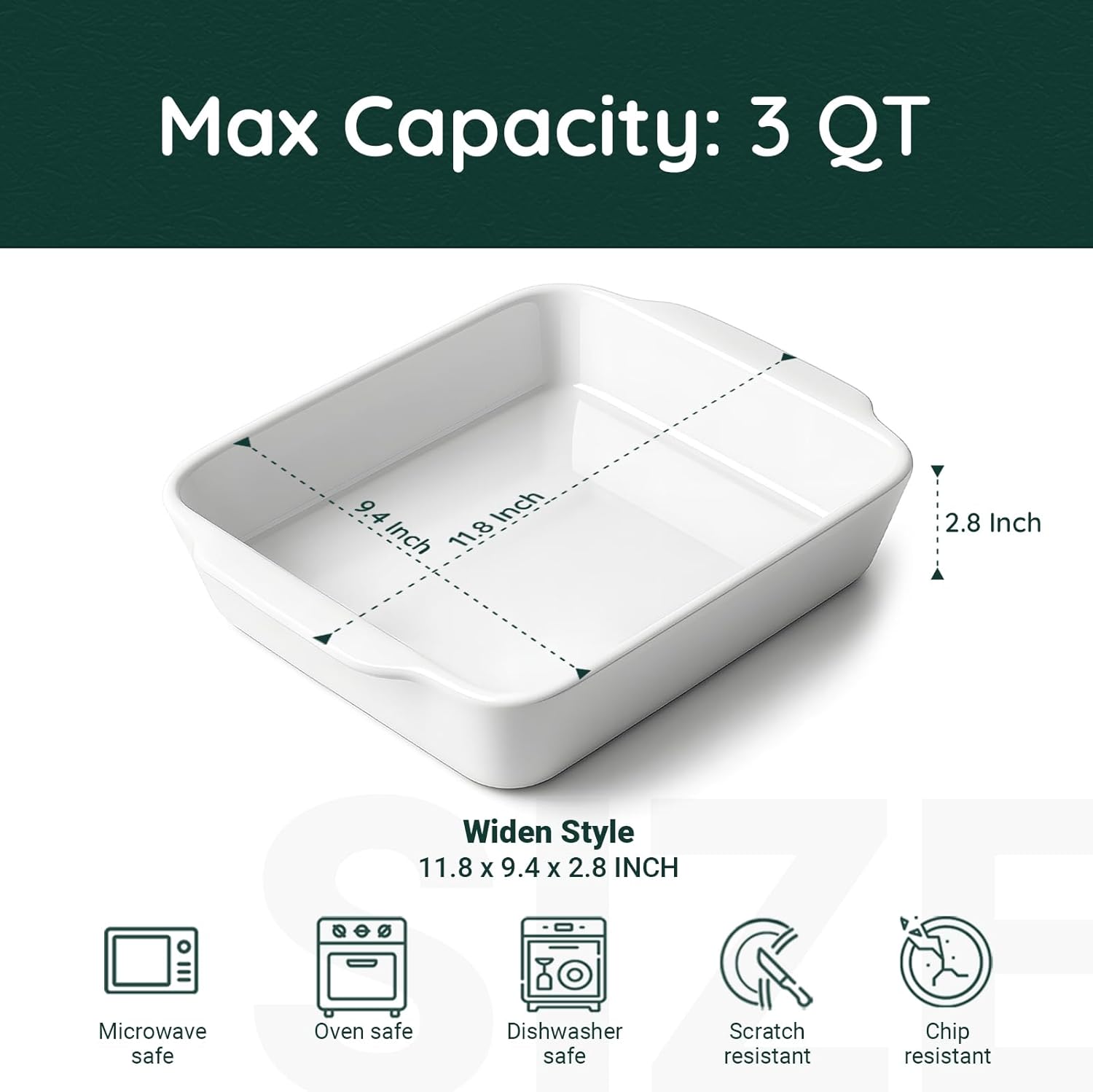 3 QT Wide Ceramic Baking Dish, White Casserole Dish with, Lasagna Pan for Oven, Ceramic Baking Pan, Kitchen Decor, Microwave Oven Safe, Dinner, Wedding (9.4" x 11.8")