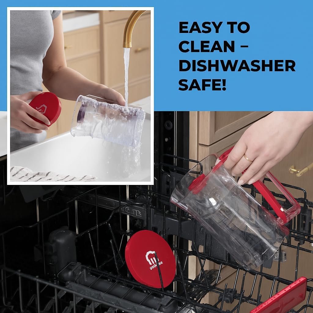 Pancake Batter Dispenser - Kitchen Must Have Tool for Perfect Pancakes, Cupcake, Waffle, Muffin Mix, Cake & Crepe - Easy Pour Baking Supplies for Griddle - Pancake Maker with Measuring Label (Red)