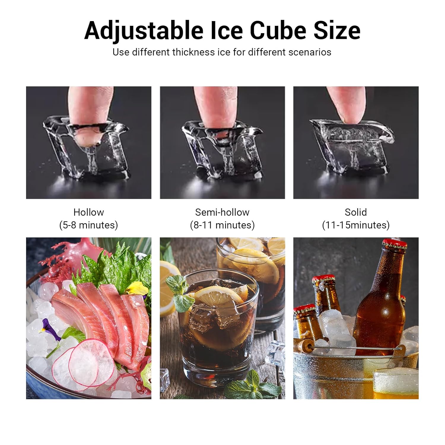 - Long Lasting Insulation, Not Easy Melting: The business ice machine's storage bucket is made of high quality materials and advanced insulation technology to ensure that the ice is not easy to melt and can protect the ice for more than 12 hours, which provides a reliable supply of ice for the business