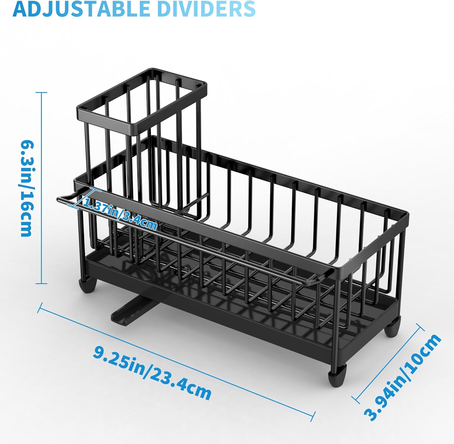 - ăONE-STOP SOLUTION TO SINK CLUTTERăCisily sink caddy can store two bottles of dishwashing detergent, two sponges, four kitchen brushes, a sink plug, and a dish towels.