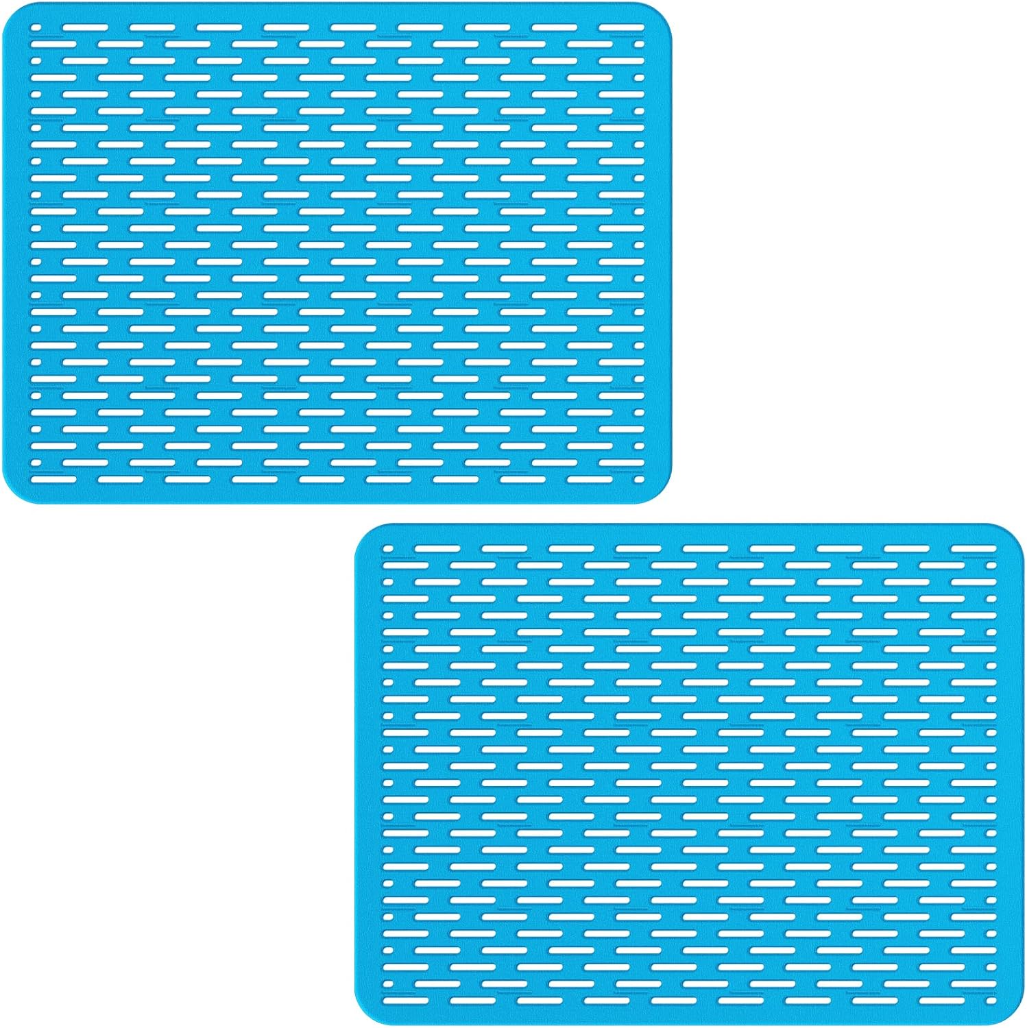Bligli Mesh Sink Mat, 15.7 x 11.8inch Sink Prtector Mats for Kitchen Sinks, PVC Eco-Friendly Sink Protectors for Bottom of Sink, Fast Draining, Easy Cleaning, Clear Blue