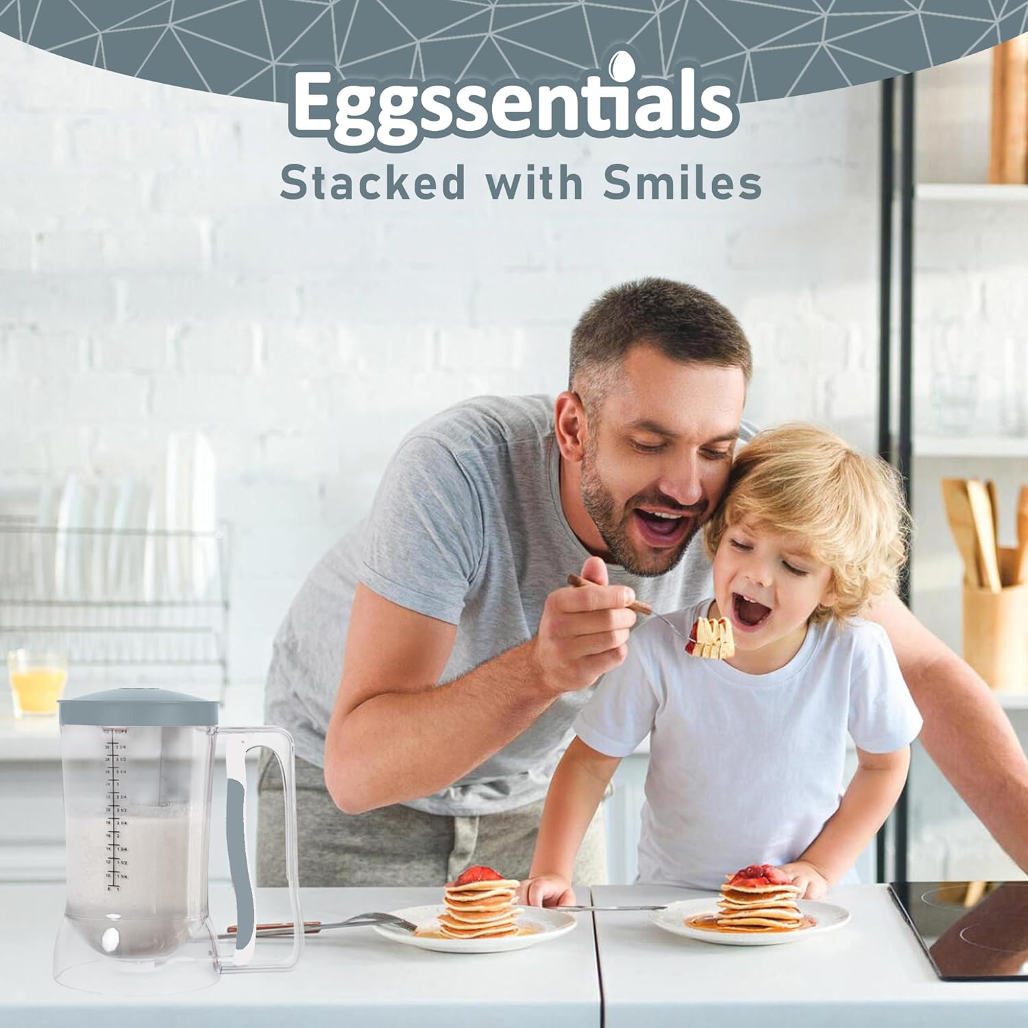 Eggssentials Pancake Dispenser – Easy Control Cake Mix Dispenser for Baking – Drip-Free Muffin & Cupcake Batter Dispenser with Handle – Great for Griddle Pancakes - Grey Color