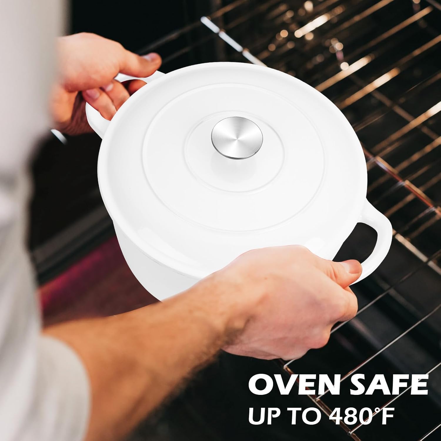 6 Quart Dutch Oven with Lid, Leonyo 6QT Enameled Cast Iron Dutch Oven for Sourdough Bread Baking, Heavy Duty Cookware for Braising, Stews, Roasting, White