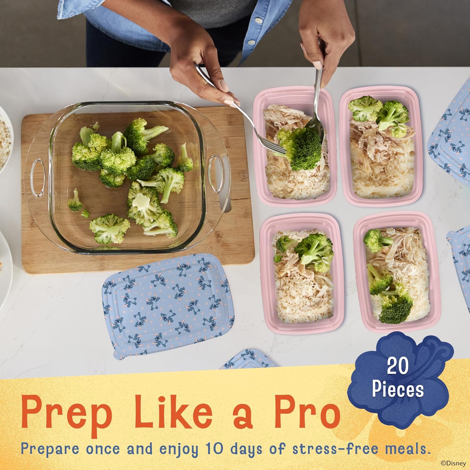 - BRING THE DISNEY FUN TO EVERY BITEβ These Disney Meal Prep Containers feature 10 durable bases and 10 Mickey & Minnie printed lids, making them perfect for lunches, meal preppers, and Disney lovers alike. Add excitement to packed lunches while keeping food fresh in our reusable plastic containers with lids.