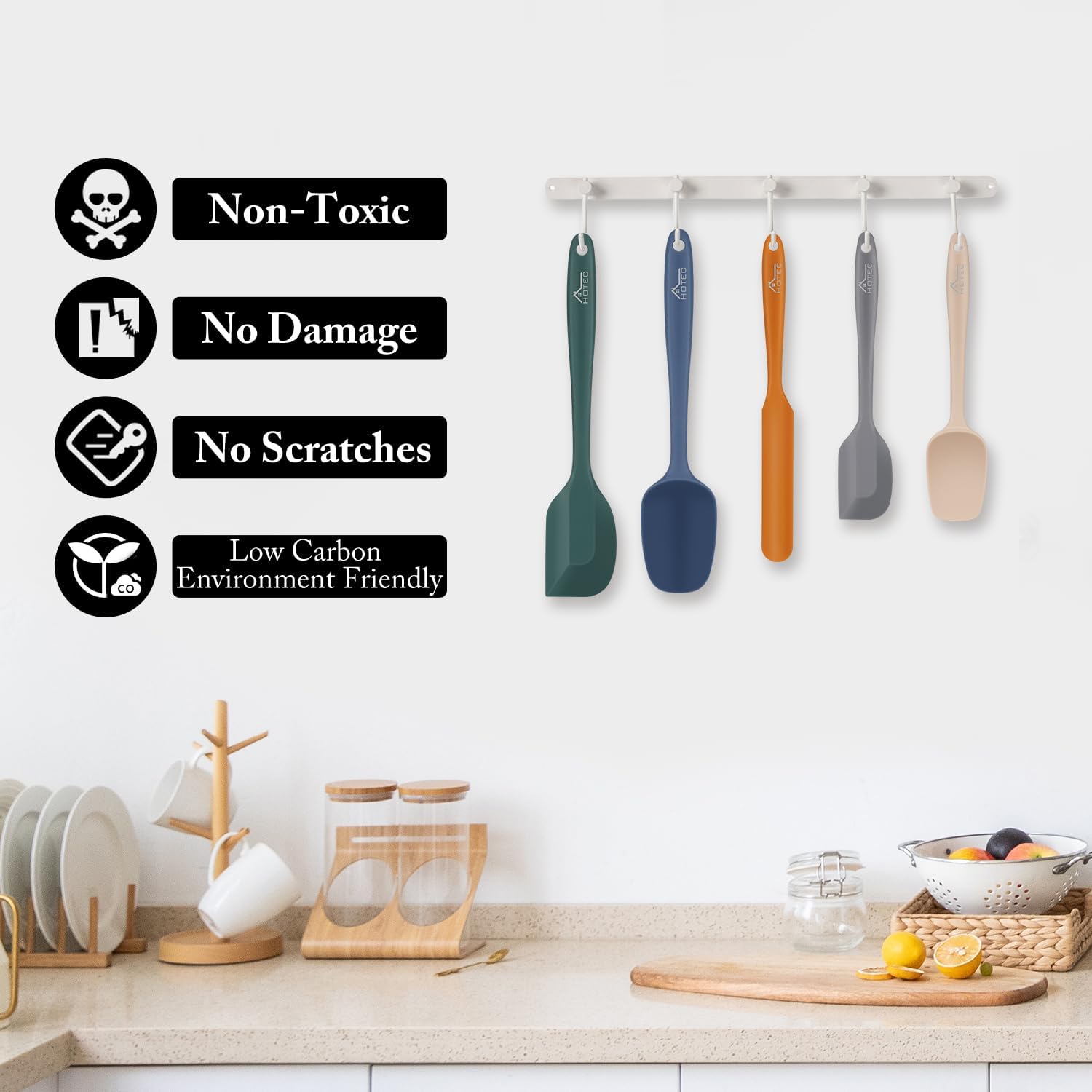 HOTEC Heat Resistant 600℉ BPA-Free Silicone Rubber Spatula Set for Baking, Cooking, and Mixing Non Stick Dishwasher Safe, Neutral Set of 5