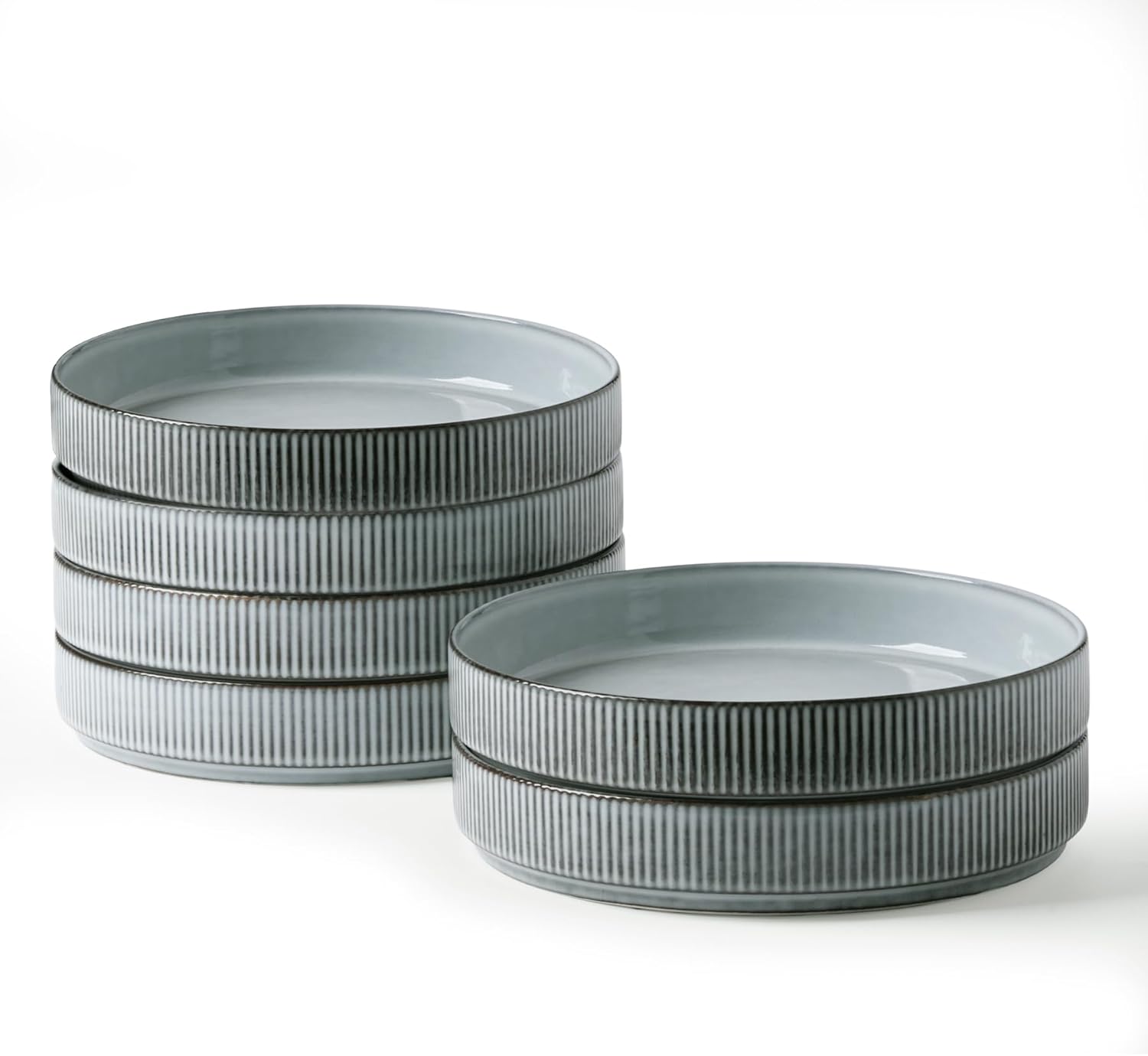 famiware Star 7.5" Pasta Bowls Set, Salad Bowl Set of 6, Double Reactive Glaze, Stackable, Perfect for Your Friend for Housewarming, Thanksgiving, Christmas, Smoky Blue