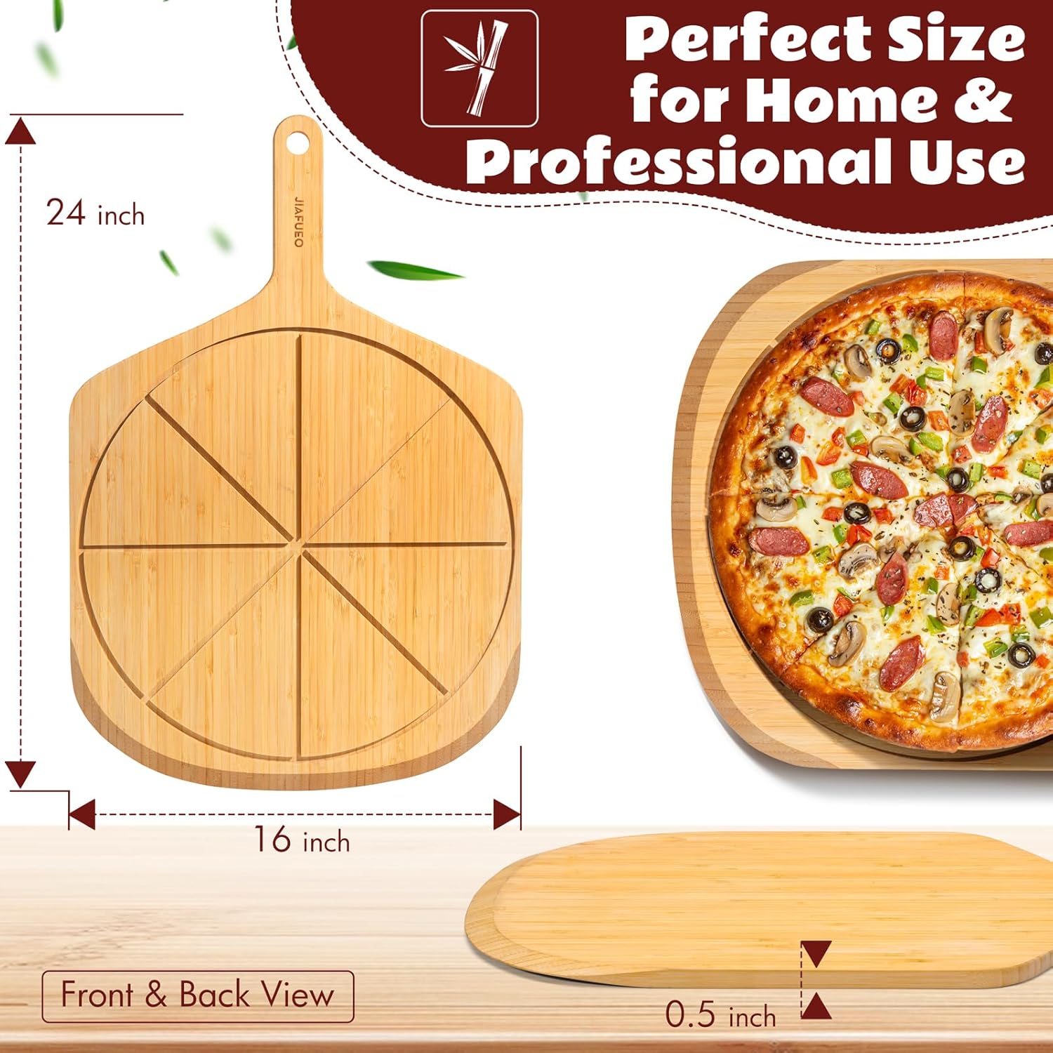 Wooden Pizza Peel 16 Inch, Large Bamboo Pizza Paddle Spatula - Serving Board, Wood Pizza Cutting Boards with 8 Slice Grooves and Handle for Kitchen Oven Pastry Pizzas