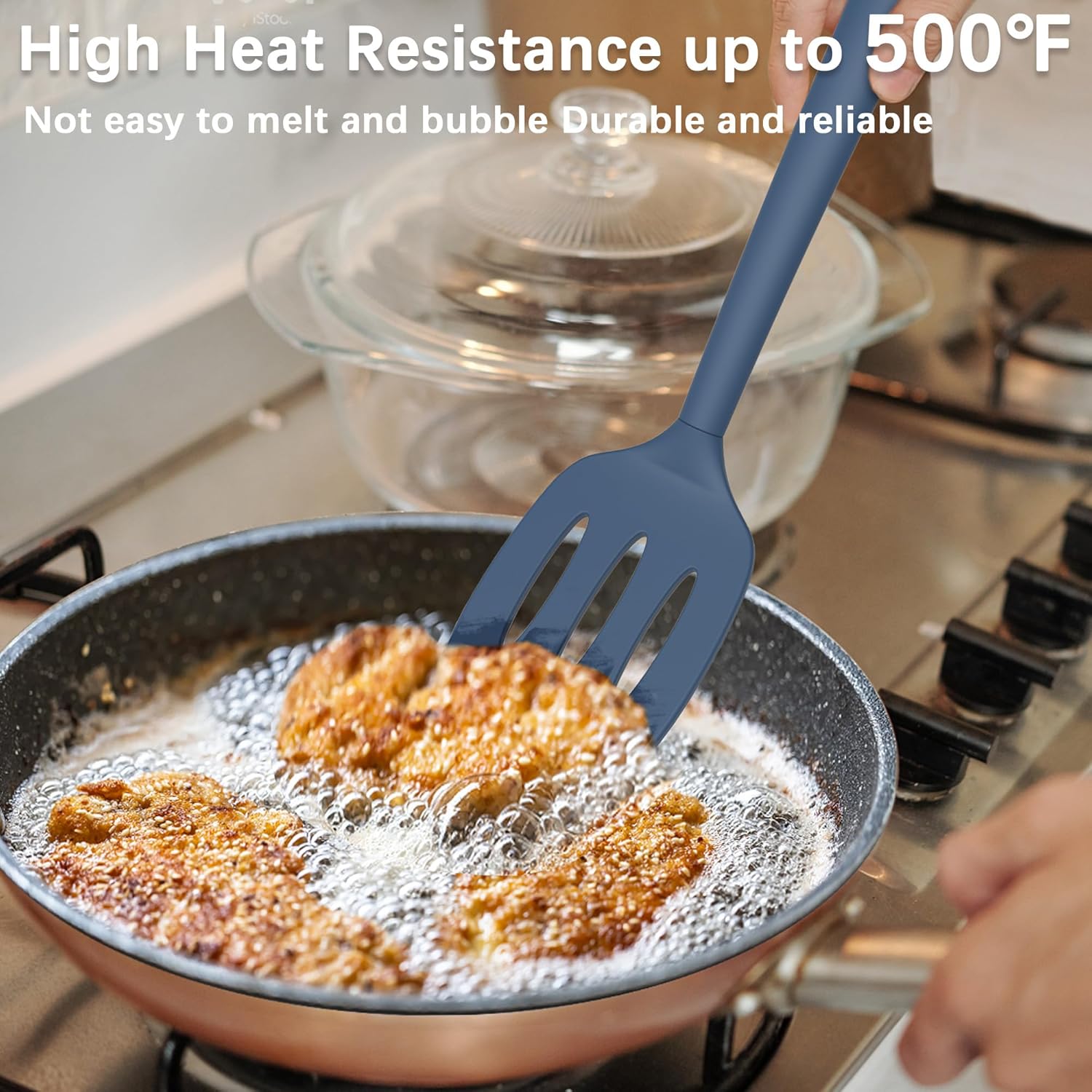 - [Comfortable Silicone Handle]: These silicone kitchen utensils are designed with a sturdy plastic core and thickened silicone handle for a firm, heat-insulated grip, the slim head ensures precise control