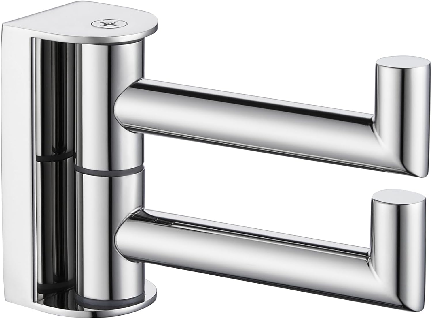 APLusee Double Swivel Towel Hook Wall Mounted, 304 Stainless Steel Folding Coat Hook with 2 Rotating Arms, Polished Chrome