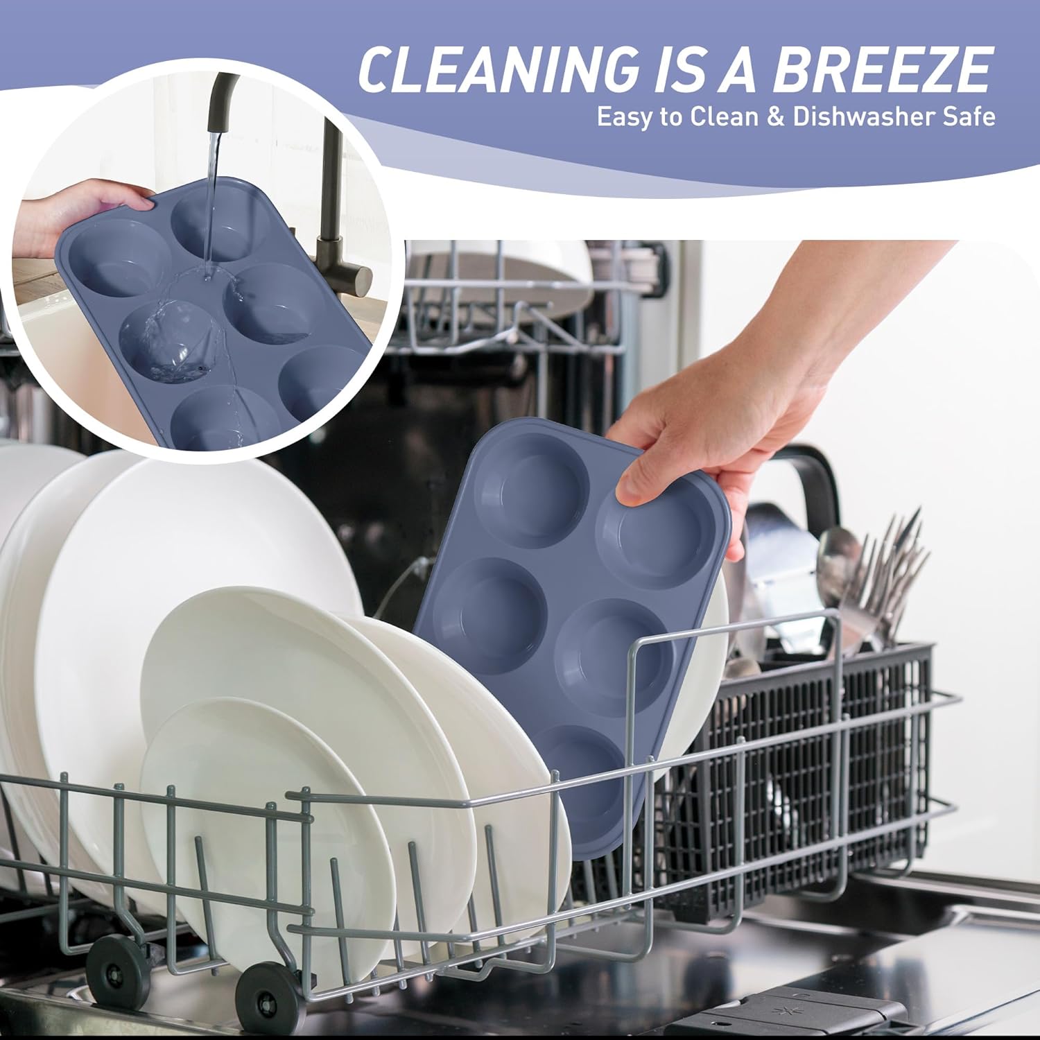 2 Pack 6 Cups Jumbo Muffin Pan with Metal Reinforced Frame Silicone Molds Egg Bites Silicone Circle Cookie Molds Extra Large Muffin Tin Jumbo Tart Pans Baking Sheet Set for Sandwiches