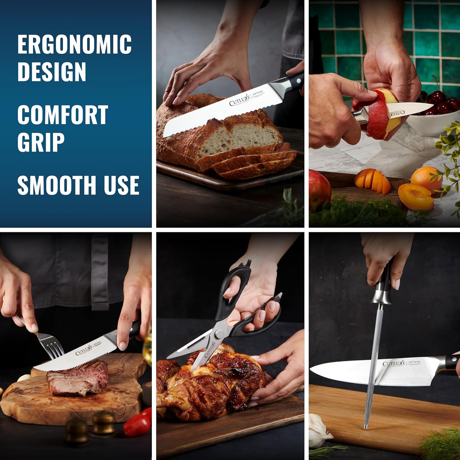 Cutluxe 15-Piece Knife Set – Premium Black Wood Block – Knife Set for Kitchen, Ultra Sharp High Carbon German Stainless Steel, Full Tang – Artisan Series