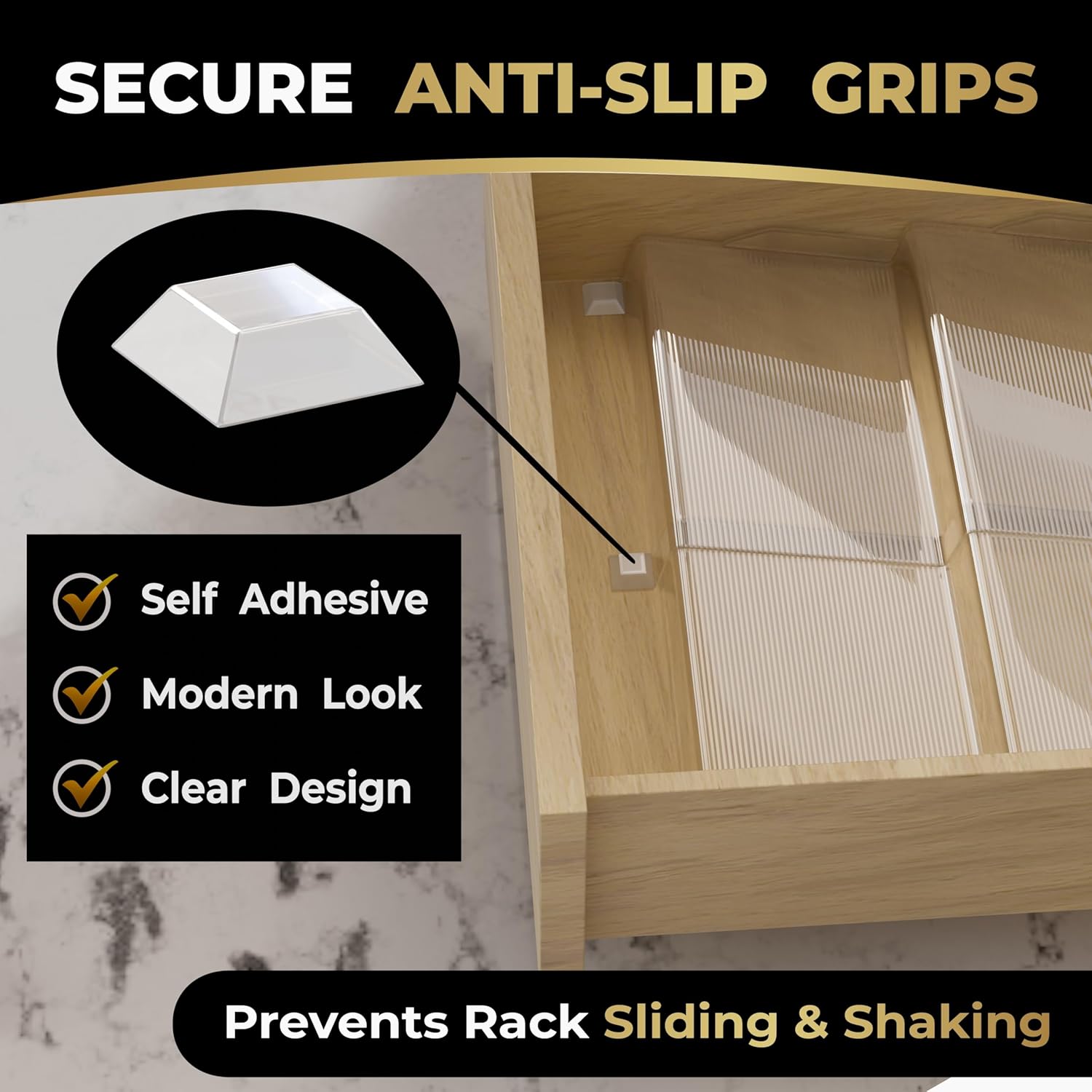 LEVANI Spice Drawer Organizer – 3 Large Tiers, Anti-Slip Grips, Narrow to Standard Drawer Size - Expandable from 8 – 15 inches Wide, Clear Durable Acrylic Spice Rack, No Sliding in Kitchen Drawers
