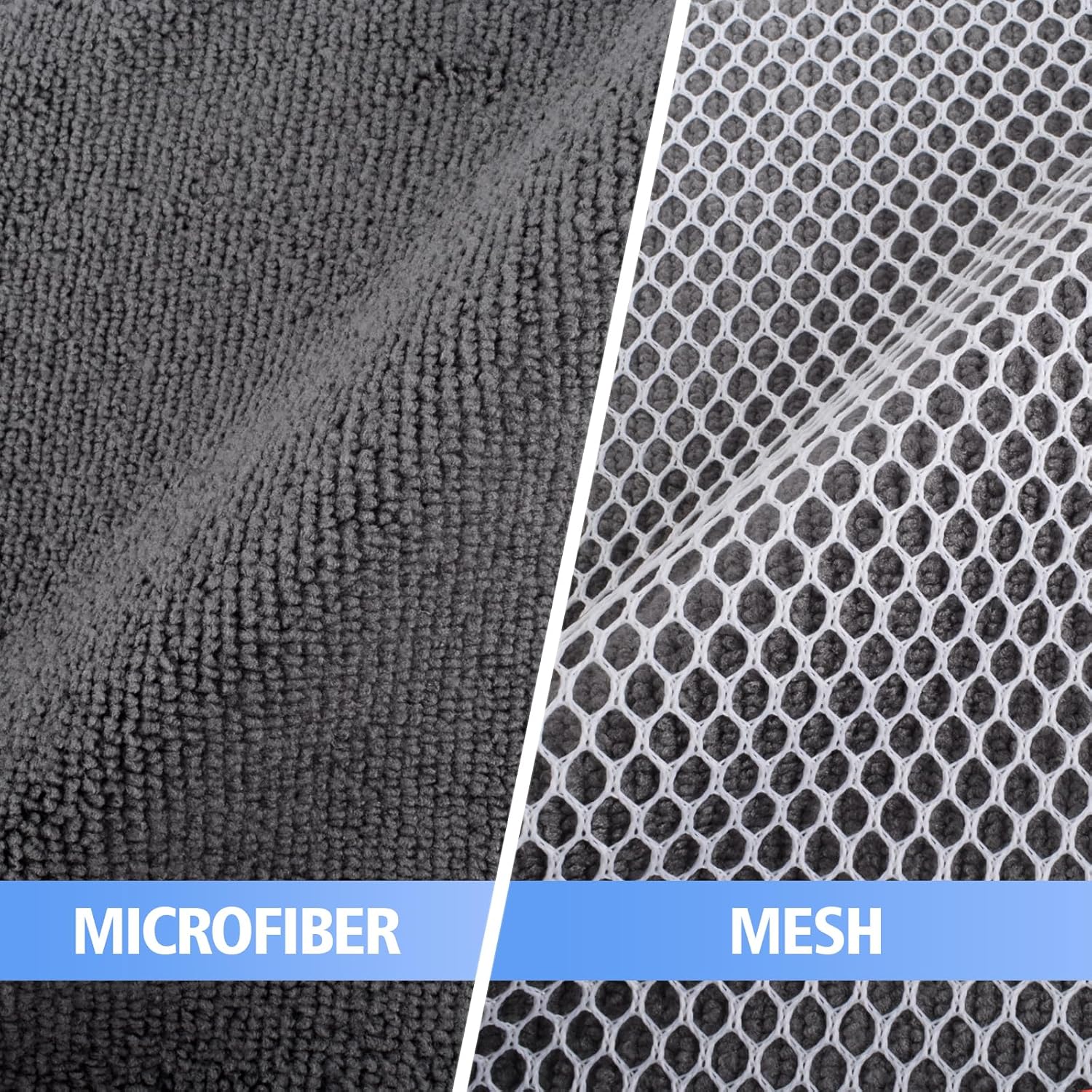 - DISH RAGS FOR KITCHEN CLEANING WITH POLY SCOUR SCRUBBING SIDE: One side is microfiber and the other side is mesh. The microfiber side works well at getting finger spots off the stainless steel appliances and the glass front of fridge or stove, microwave; the scrubby side is good for cleaning stuck on food without having to grab your scraper and does not scratch delicate surfaces either