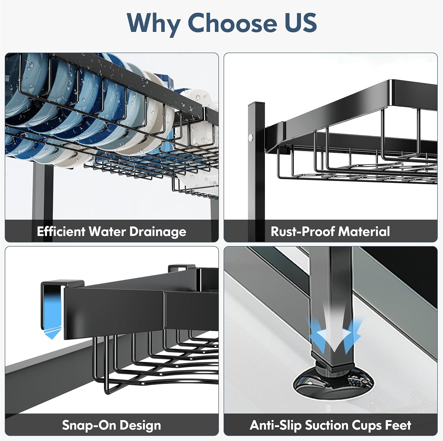 - ๐ง Leak Free Water Management: Flat, level shelves let gravity channel drips directly into the sink, eliminating puddles on countertops. The kitchen dish drying rack rust proof grid prevents water pooling, while smooth edges protect dishes from scratches. Wipe clean with a cloth, no disassembly needed for routine maintenance