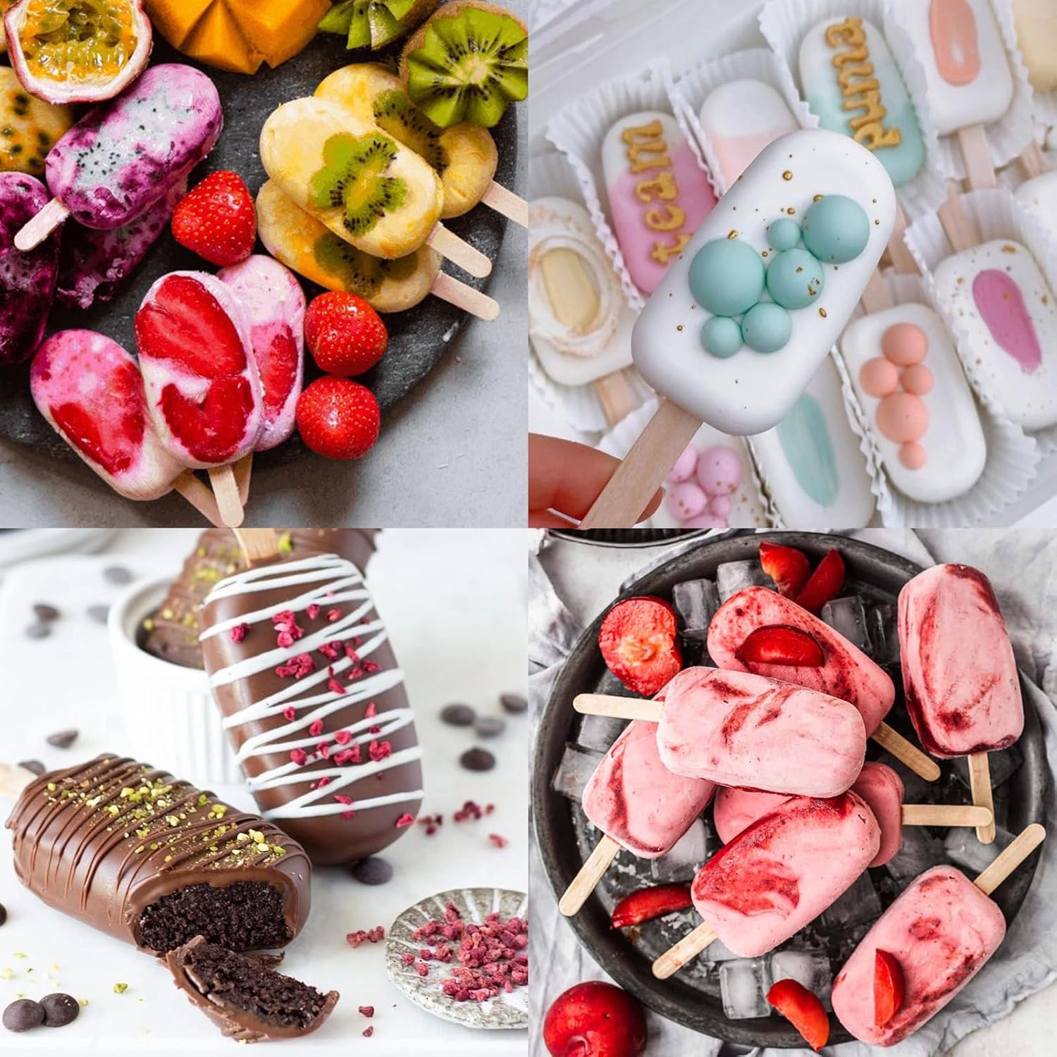 - MULTIPURPOSE: The popsicle molds with sticks not only for making ice pop, sugar free ice cream, also homemade cake popsicle, jello, candy bar, breastmilk, brioches, savory cakes, cakesicles, they are fun products not only for summer, but also can be used in winte