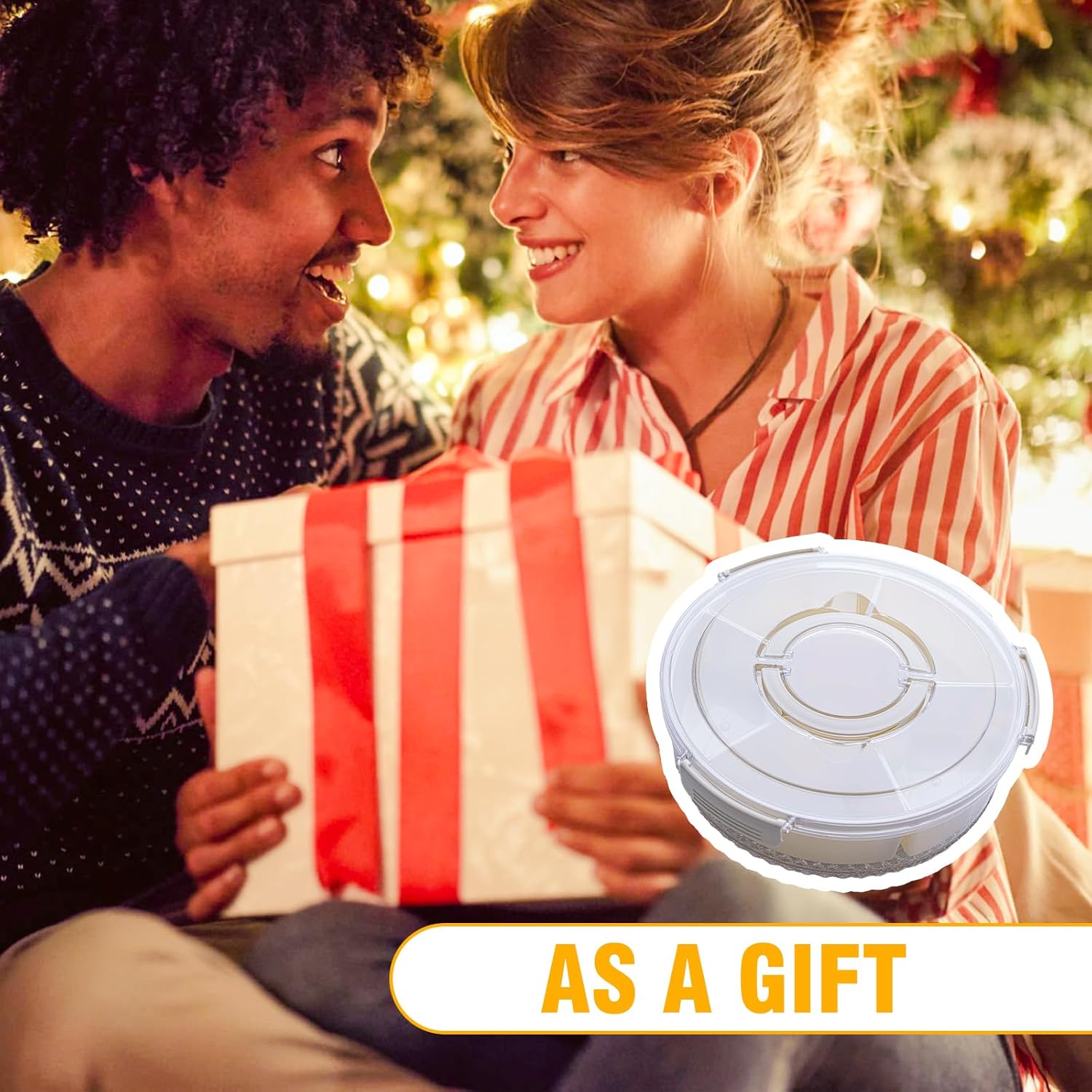 Divided Rotating Serving Tray with Lid & Handle, Portable Snack Spinner for Fruits, Veggies, Charcuterie, Party, Travel, Picnic, and Fridge Storage