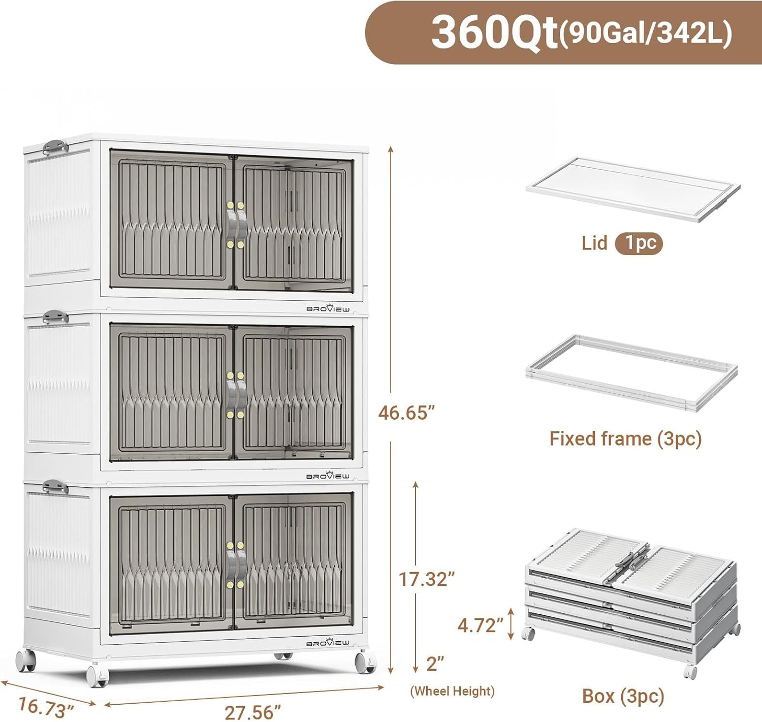 - 【5 Mins Easy Assembly & Warm Tips】The stackable storage bins open front only take 5 minutes to assemble the entire storage cabinet. Thanks to the foldable and stackable design, Broview v8 stackable storage bins can be disassembled and folded at any time when not in use. Warm Tips: Currently only 120QT black come with multi Lid, other need to be purchased separately.