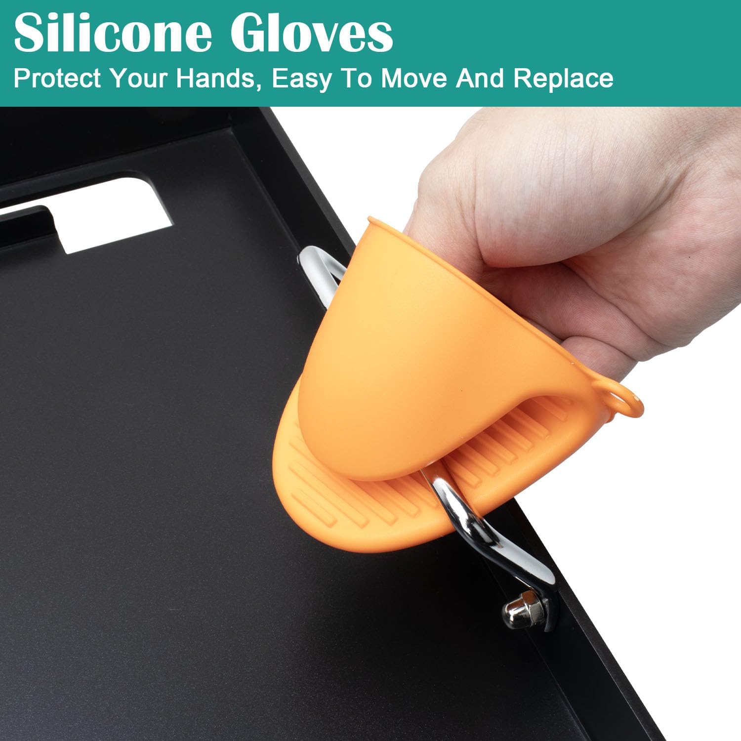 - 【Griddle Handles & Silicone oven mitts】Our griddle comes with handles so you can add fuel or change the grill mode at any time. Silicone gloves that are thick heat resistant potholders made from premium food grade material; Mittens are rated to protect you from heat up to 446℉(230℃), it allows you to No need to wait for the griddle to cool down when replacing, making it quicker and easy to replace.