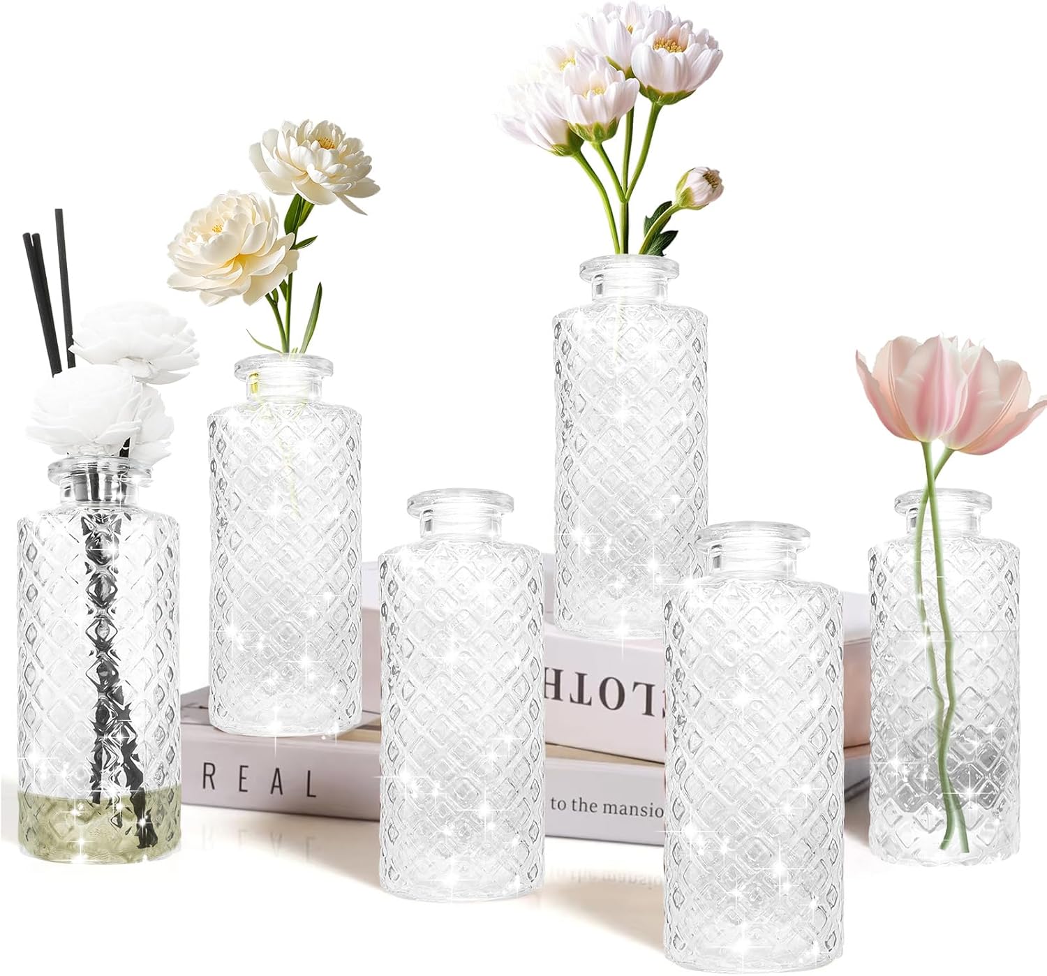 Glass Flower Vase, Aromatherapy Bottle, Small Vase, 6 Sets, Simple, Centerpieces for Table, White Transparent, for Home Decoration, Anniversary, Wedding