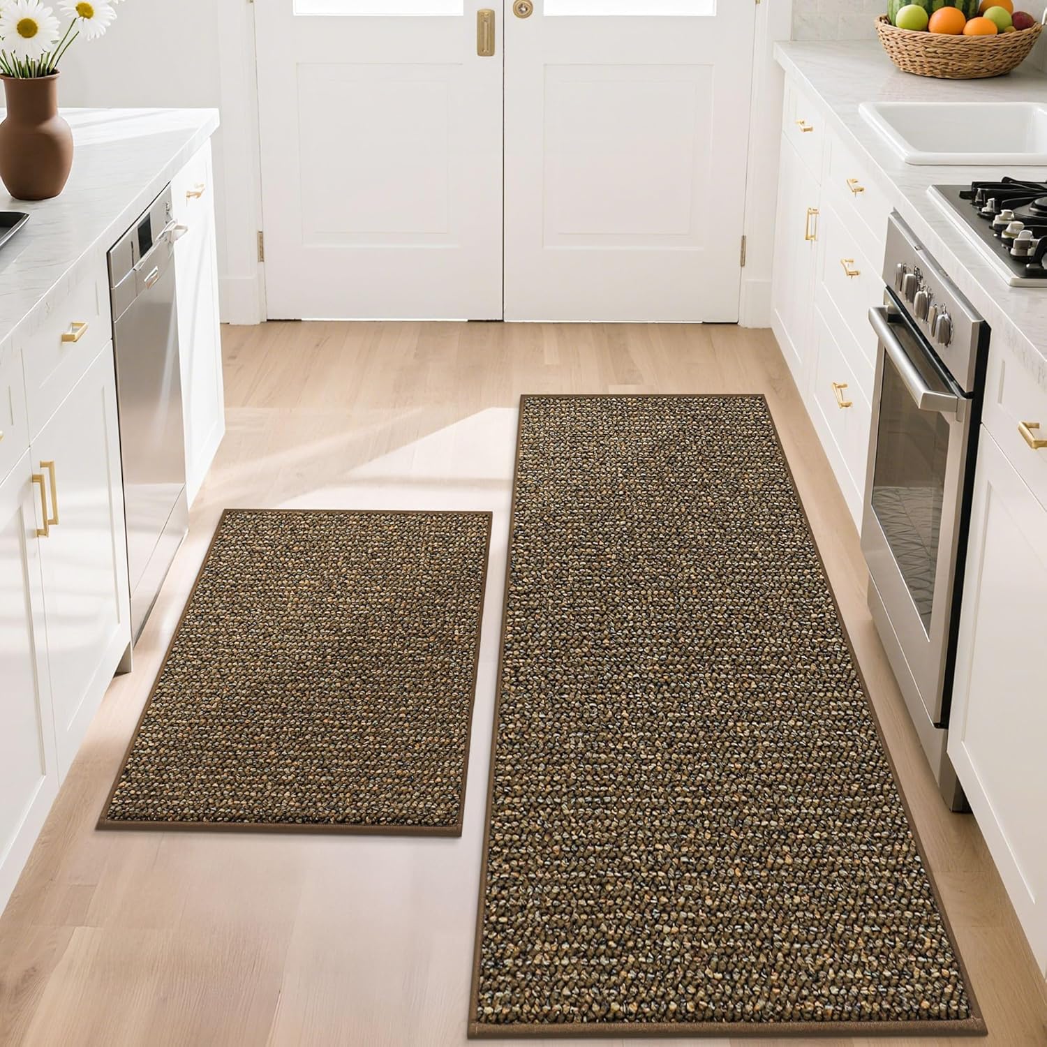 BEQHAUSE Kitchen Rugs and Mats 2PCS, Non-Slip Kitchen Mats for Floor, Absorbent and Stain Resistant Kitchen Runner, Machine Washable Rugs for Kitchen, Laundry & Sink, 20"x32"+20"x48", Brown