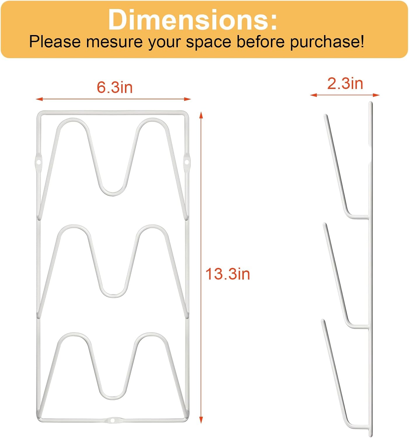 2 Pack Pot-Lid-Organizer, 6-Tier Pots and Pans Lid-Organizer for Cabinet Door/Wall, No Drilling Adhesive Wall/Door Mounted Rustproof Pot-Lid-Holder for Kitchen Organization - White