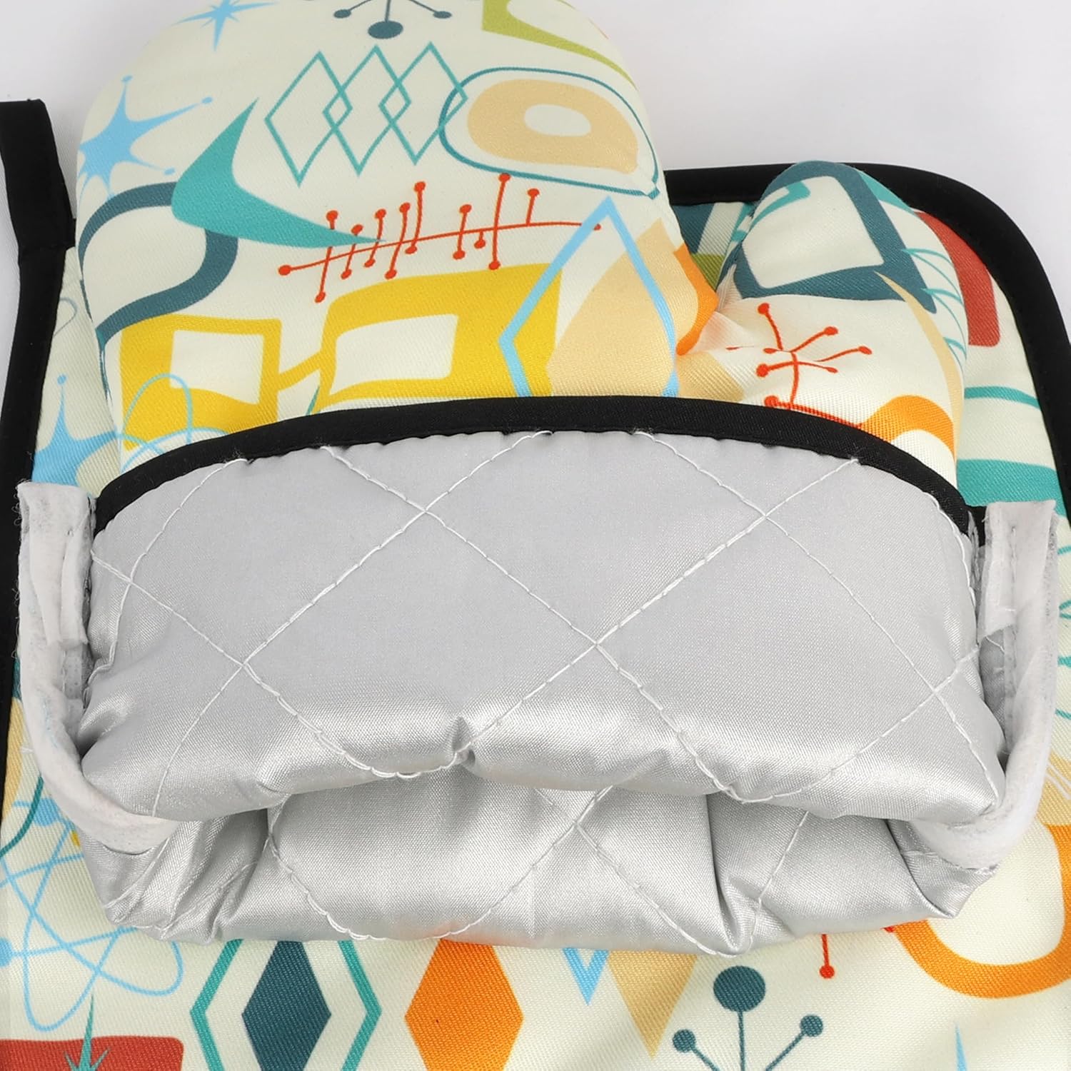 Mid Century Modern Oven Mitts and Pot Holders Sets Washable Oven Gloves Heat Resistant 4 Pcs Decorative Kitchen Hot Pads and Mitts for Baking Cooking Grilling