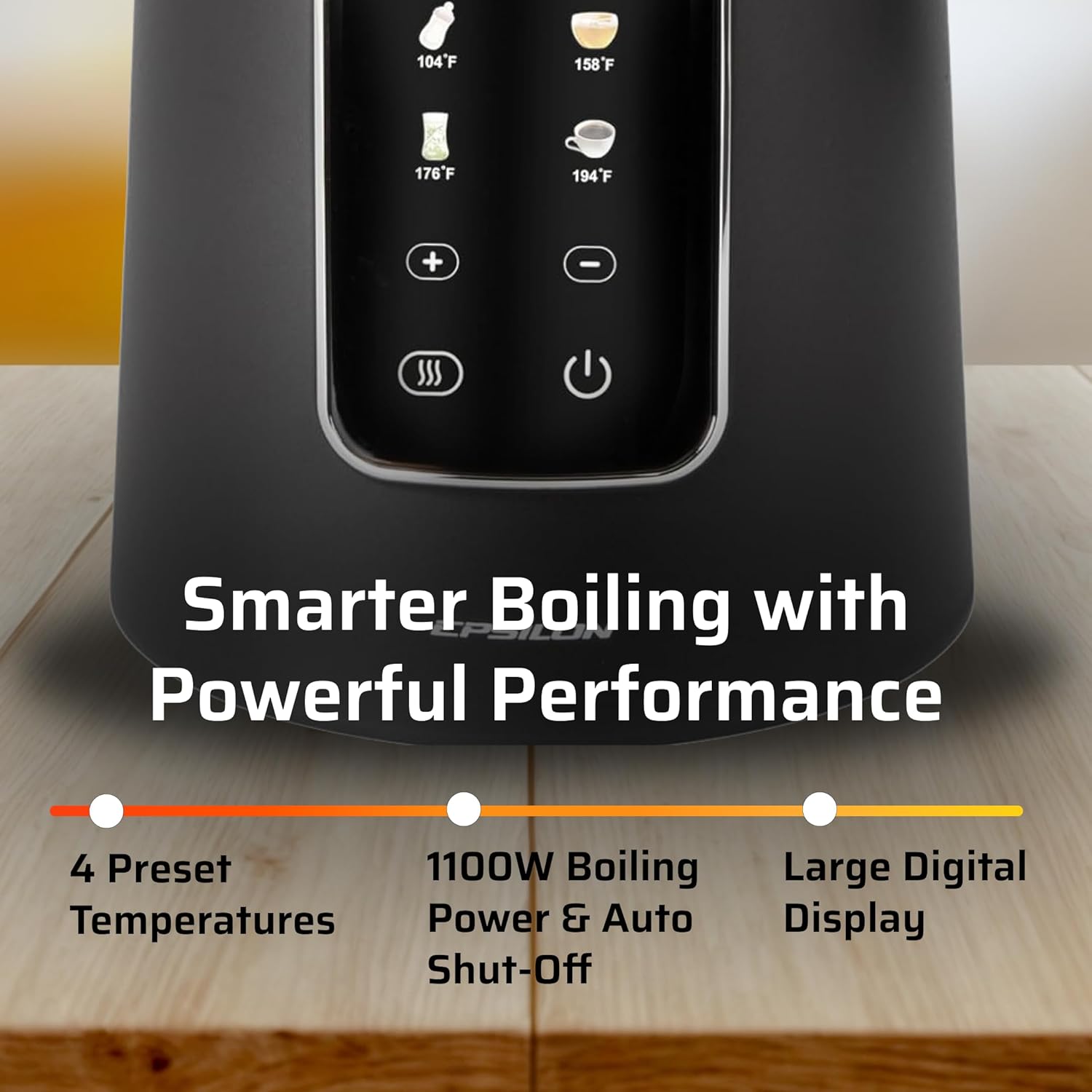Epsilon LCD Electric Kettle 1500W - 1.7L Hot Water Tea Kettle with Digital Display, Temperature Control, Fast Boil, BPA-Free Electric Teapot with Auto Shut-Off & Boil Dry Protection